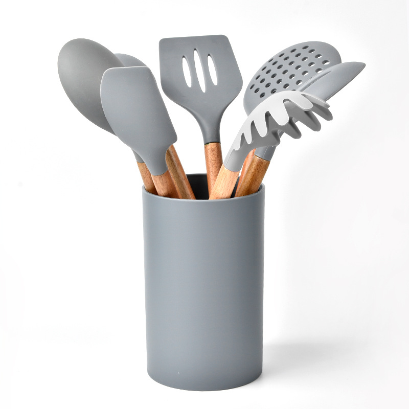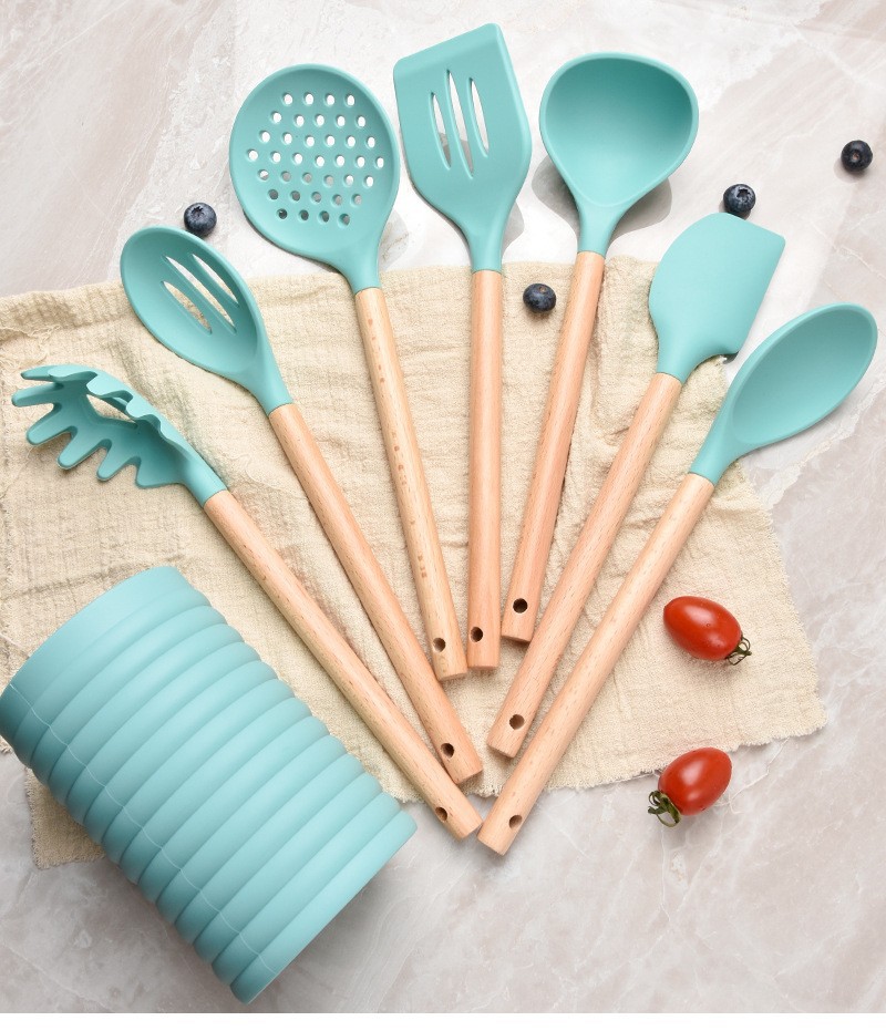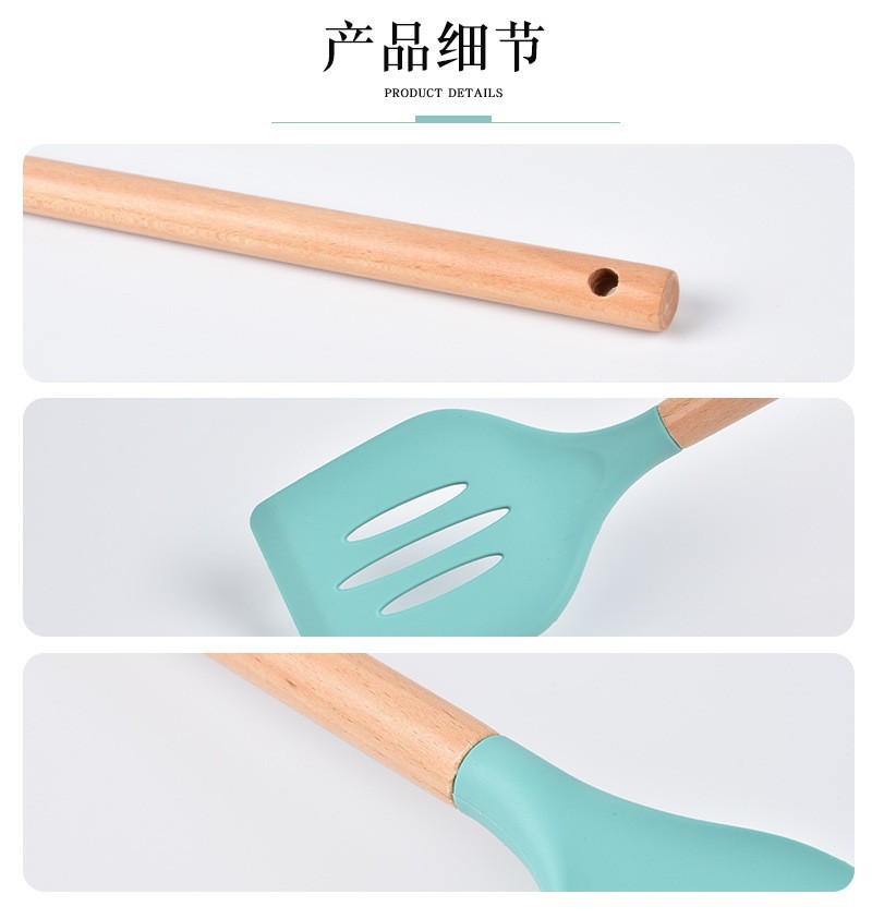 고온 저항하는 실리콘 주방 용품 나무 손잡이 7 조각 실리콘 주방 용품 세트 가정용 요리 삽과 숟가락 도구 무료 배송