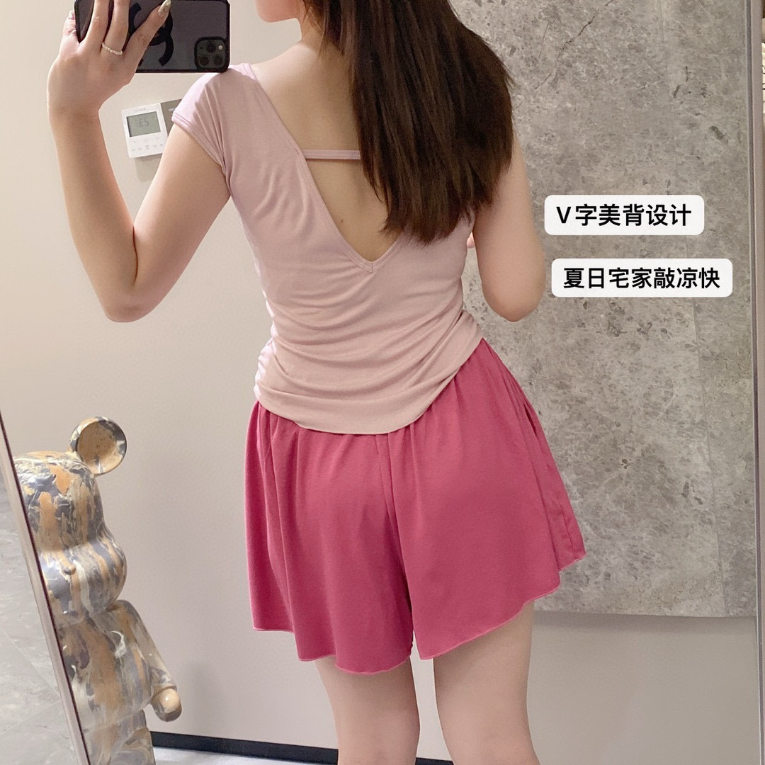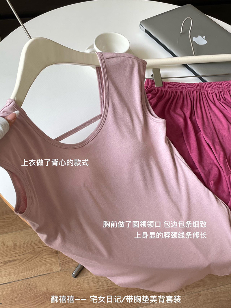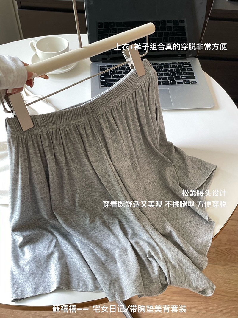 흉부 패드 대형 V 뷰티 스트랩 브라 우아한 홈 의류 세트 단색 캐주얼 반바지 여성용 슬리브 파자마스토어 가기