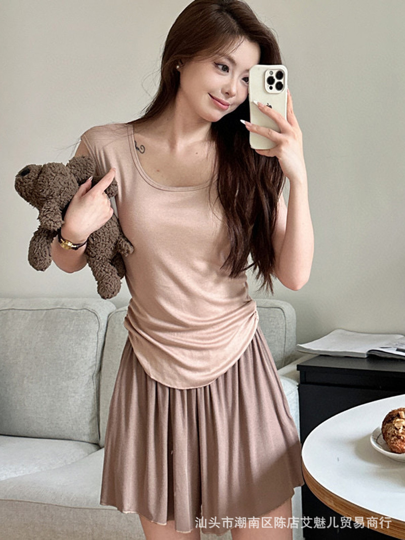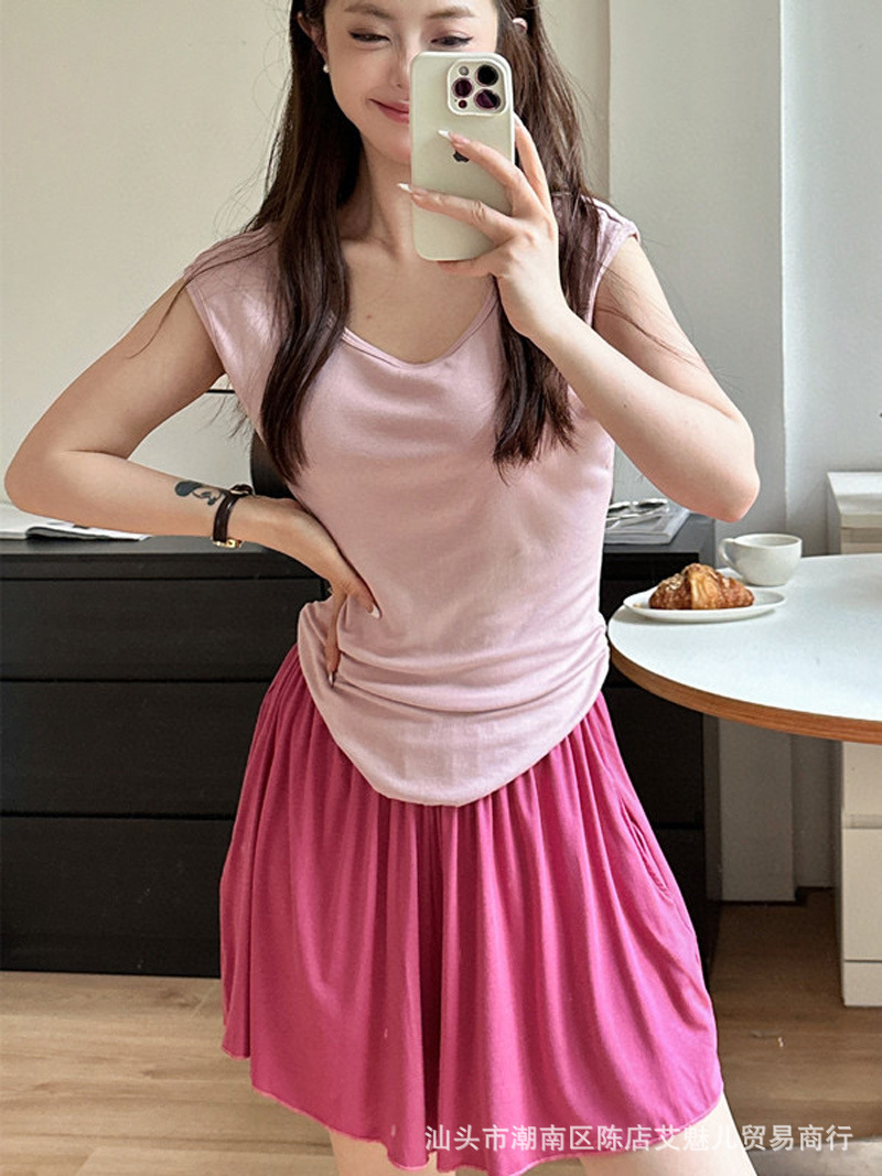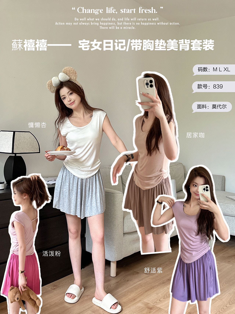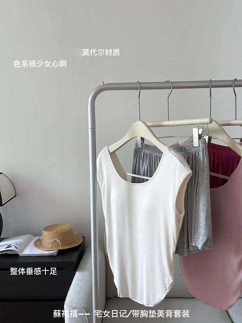 흉부 패드 대형 V 뷰티 스트랩 브라 우아한 홈 의류 세트 단색 캐주얼 반바지 여성용 슬리브 파자마스토어 가기