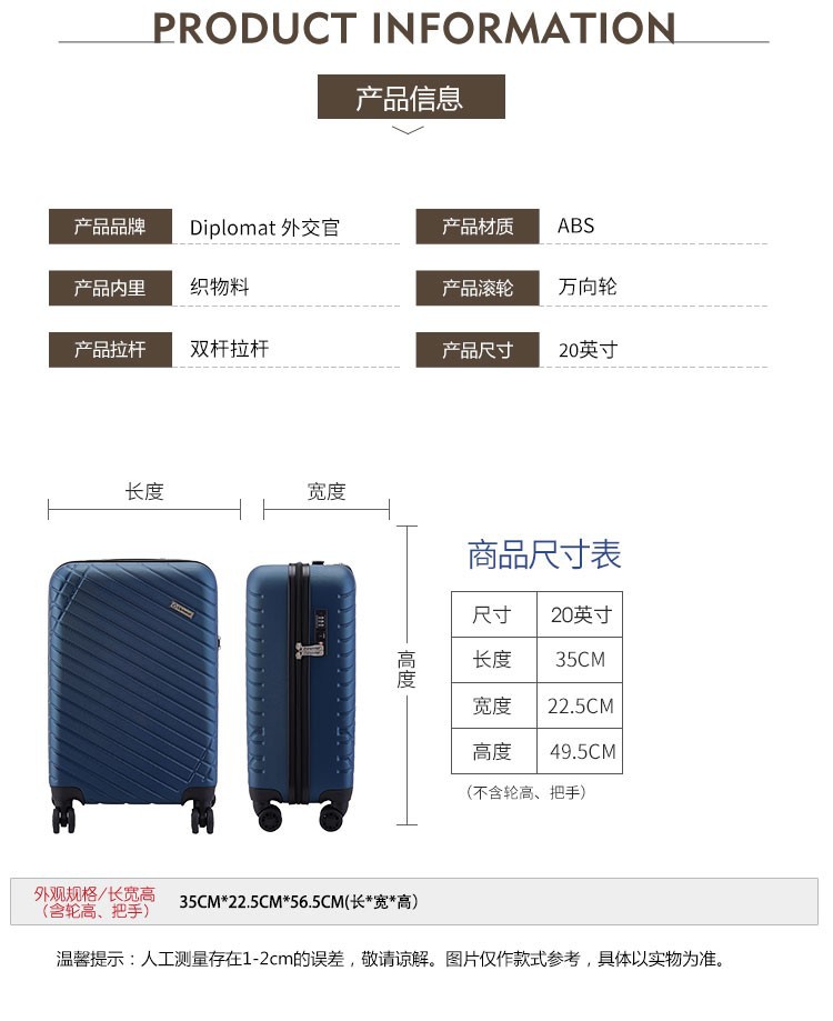 외교관용 트롤리 여행가방, 남녀공용 비밀번호 케이스, 회전식 바퀴가 달린 기내용 캐리어 YH-6382TSA 비밀번호 잠금장치스토어 가기