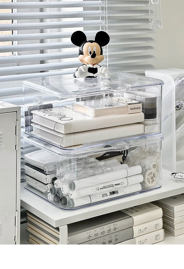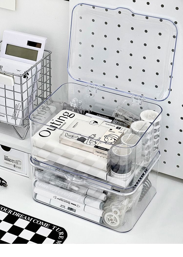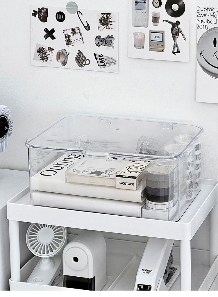 탁상용 보관 상자 아크릴 투명 잡화 랙 바구니 사무실 책상 뚜껑 방진 침실 마감 상자스토어 가기