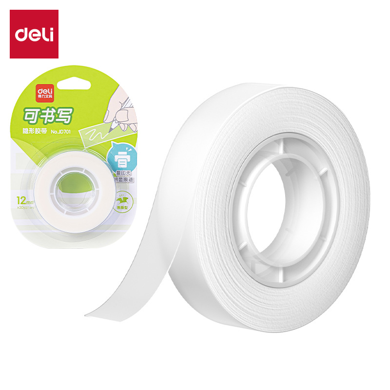 • 델리 JD701 찢어지기 쉬운 투명 문구테이프 12mm*30y (유백색) (1롤/카드)