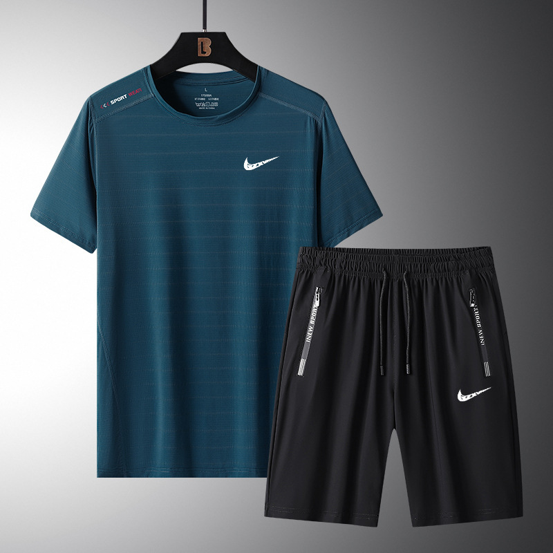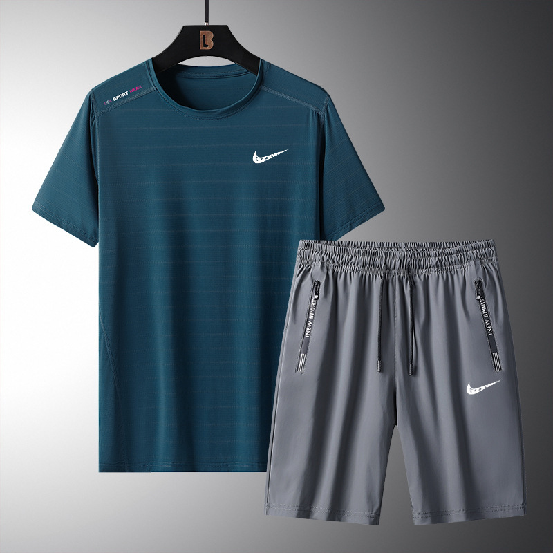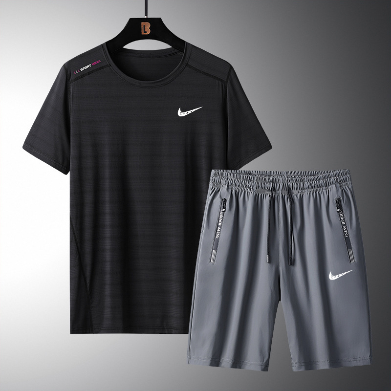브랜드 여름 뉴 세트 남성용 아이스 실크 얇은 스포츠 캐주얼 반팔 빠른 건조 티셔츠/반바지 세트 투피스 세트