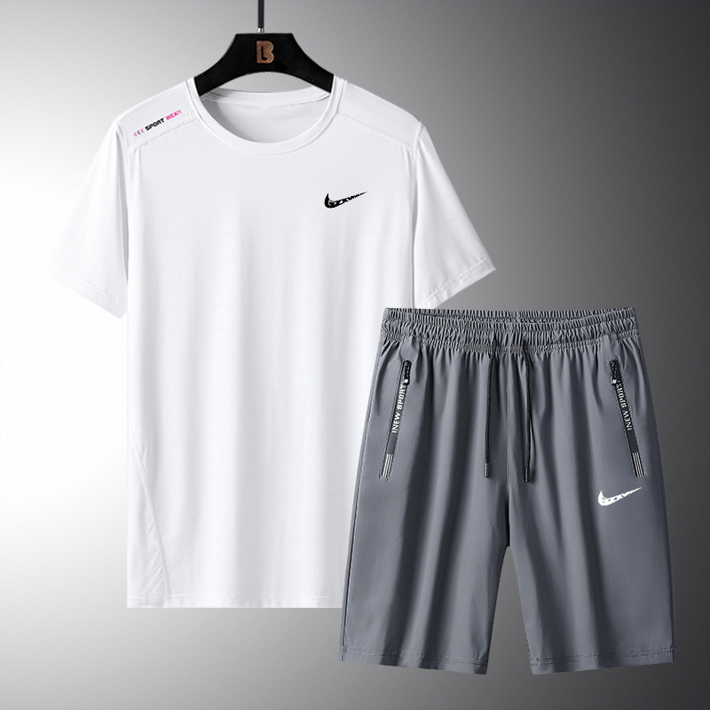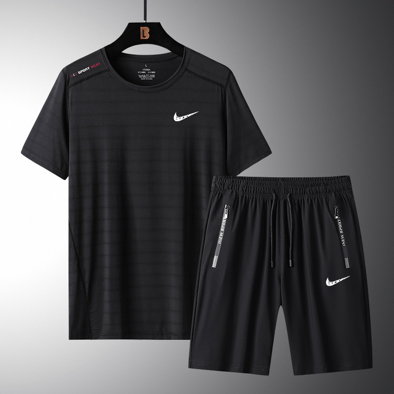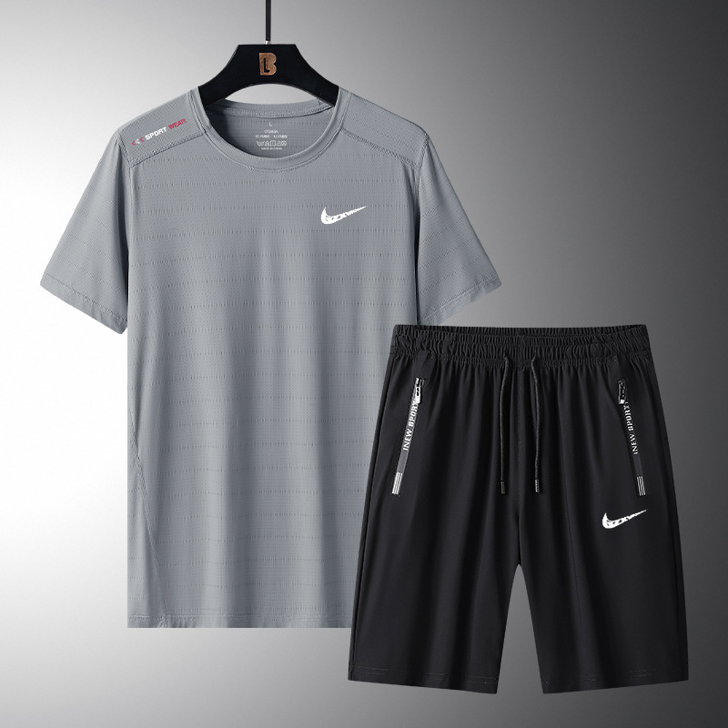 브랜드 여름 뉴 세트 남성용 아이스 실크 얇은 스포츠 캐주얼 반팔 빠른 건조 티셔츠/반바지 세트 투피스 세트스토어 가기