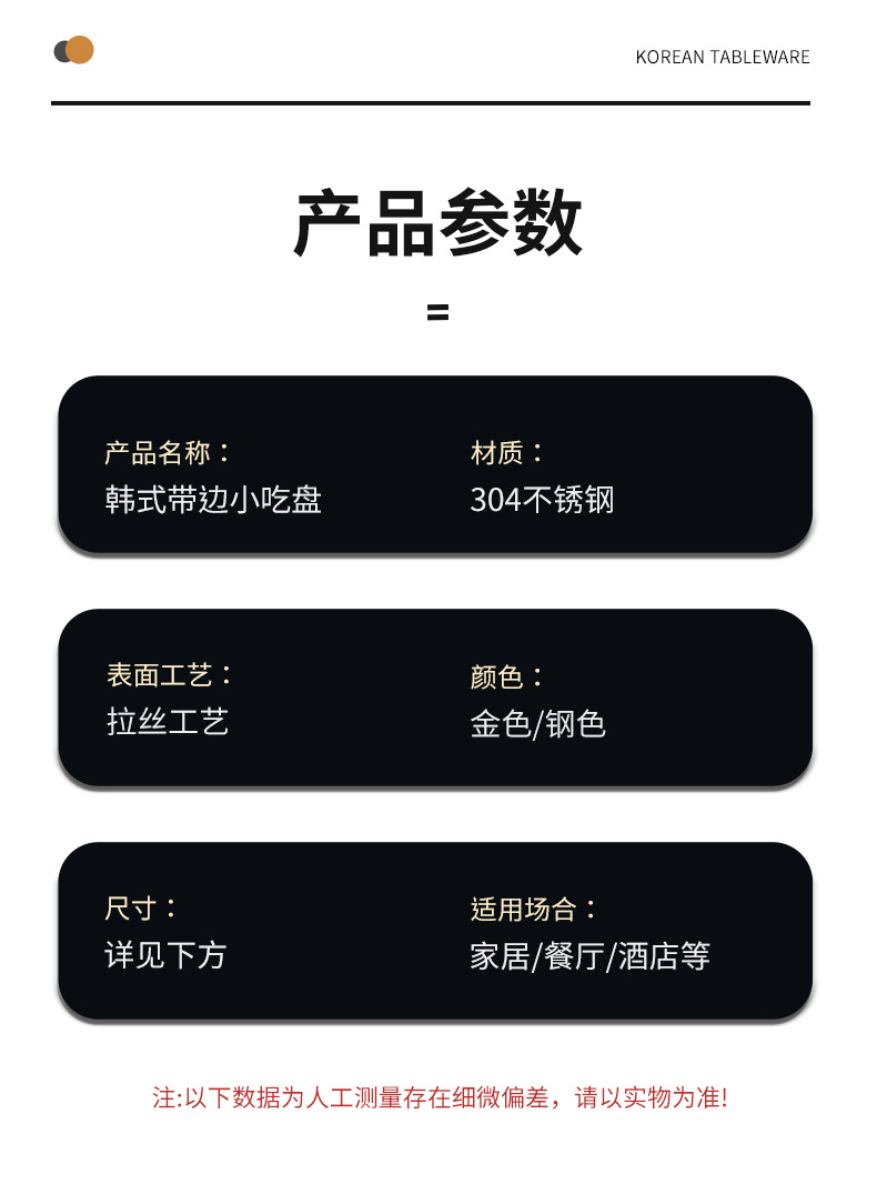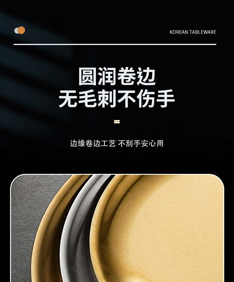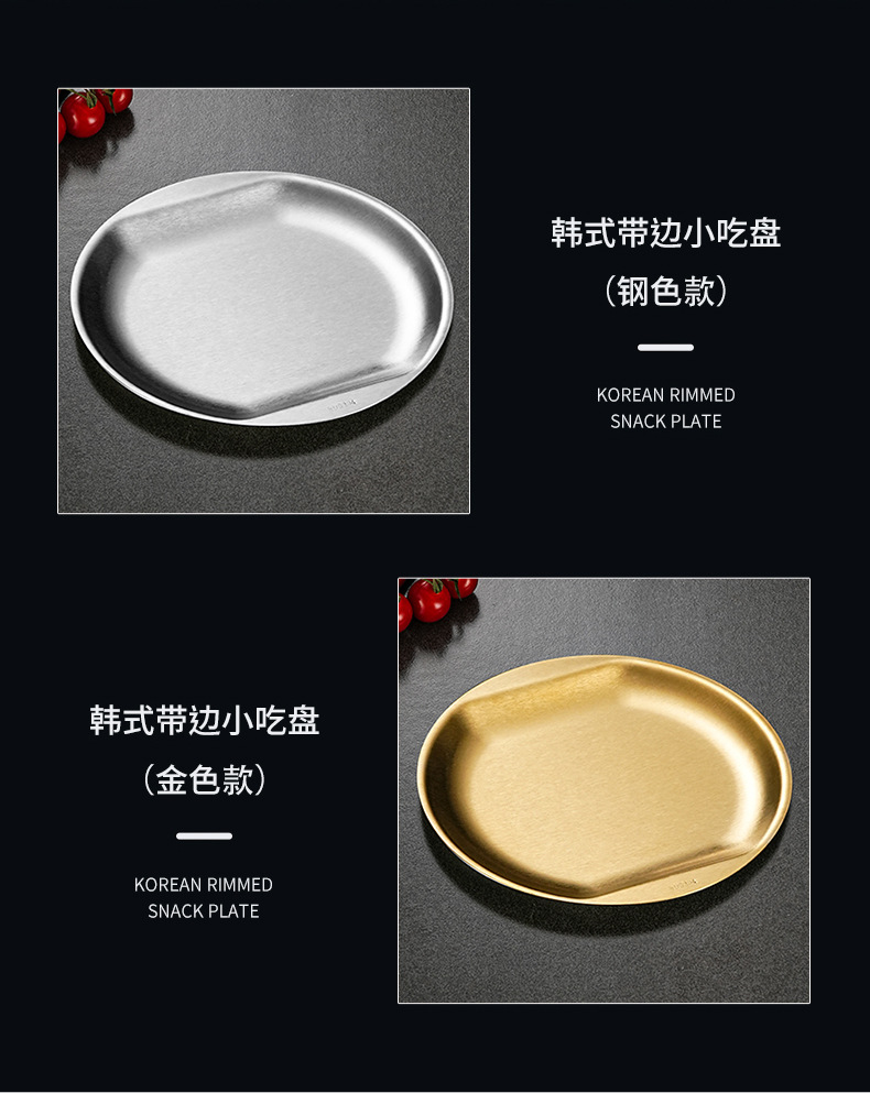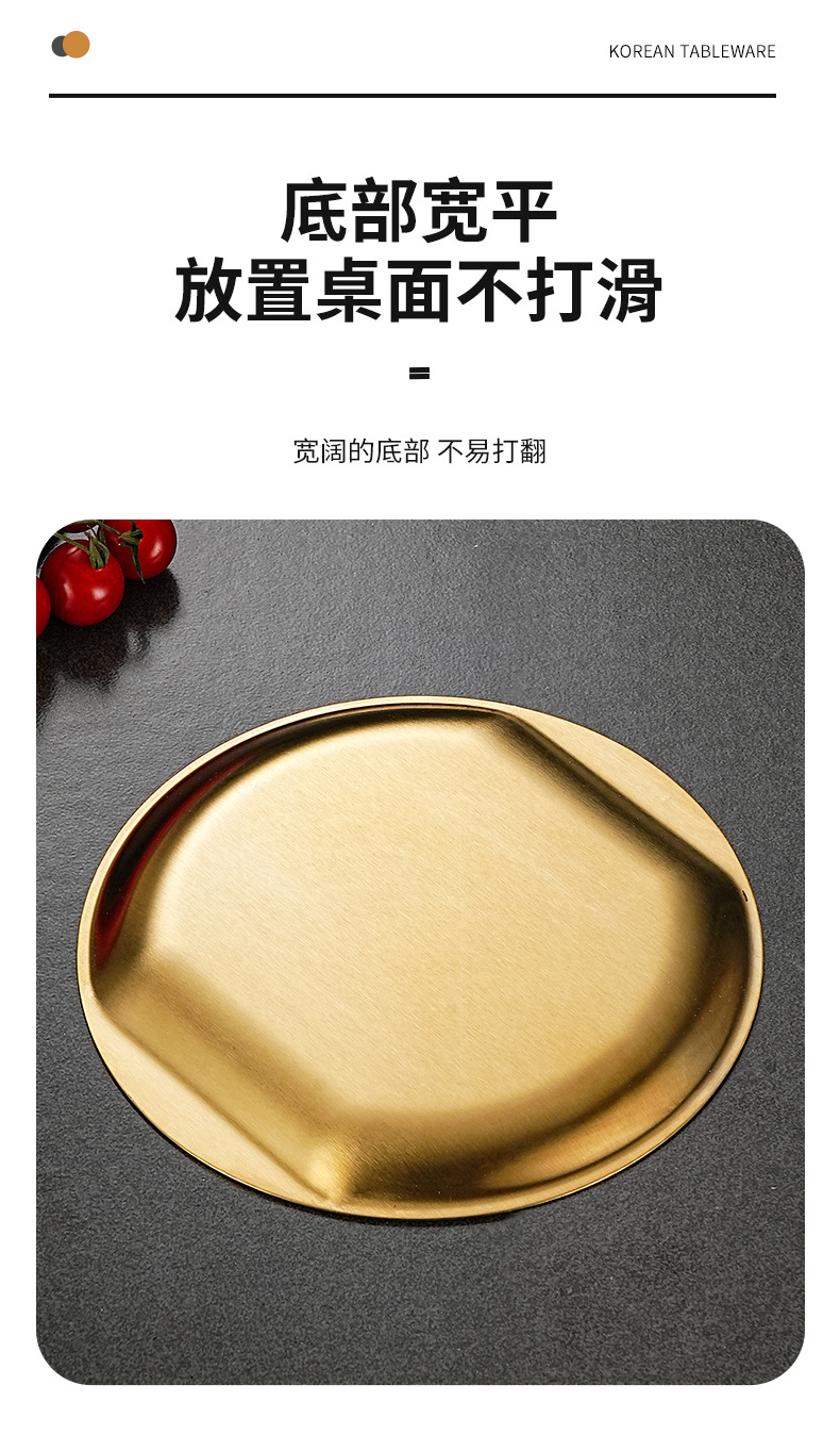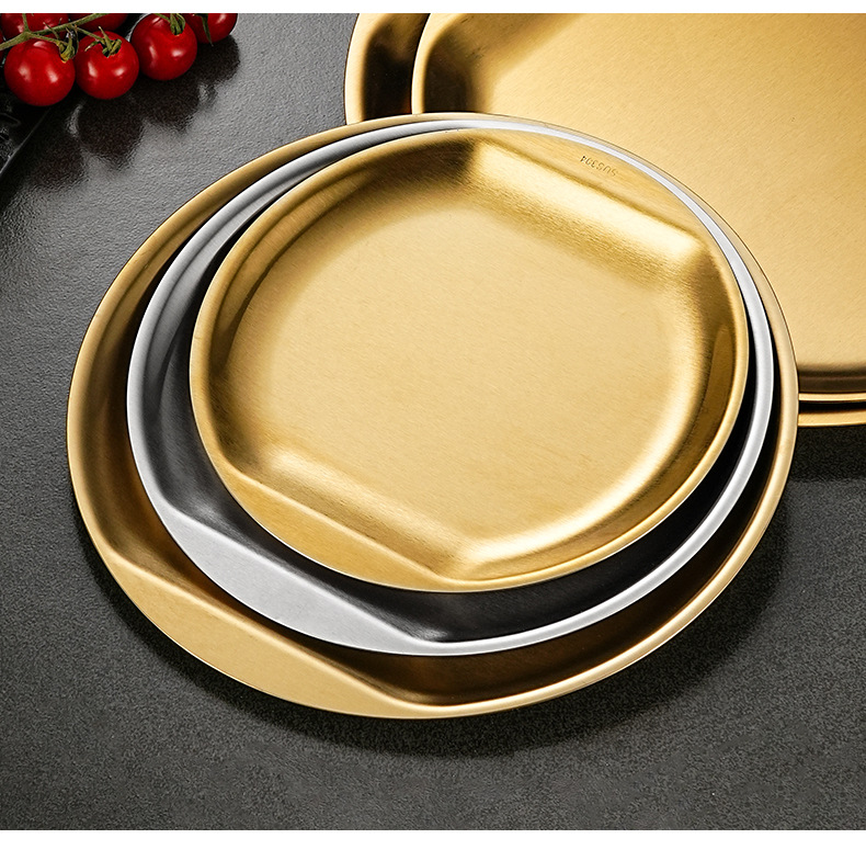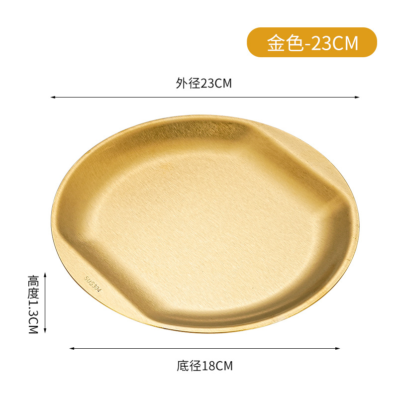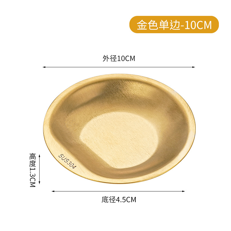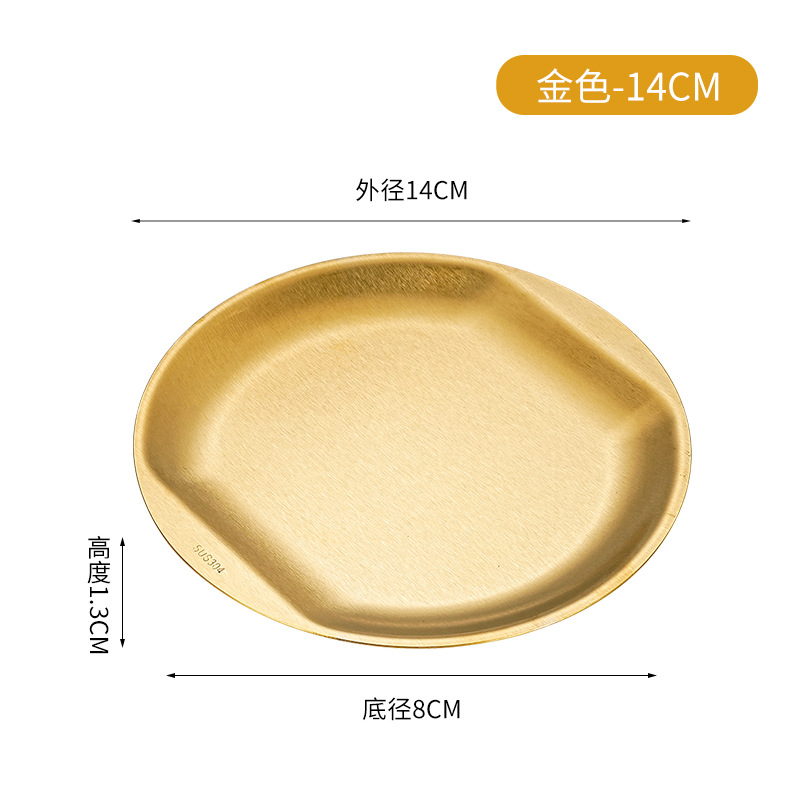한국식 304 스테인레스 스틸 디스크 황금 스낵 플레이트 사이드 두껍게 바비큐 플레이트 창조적 인 딥 접시 과일 플레이트