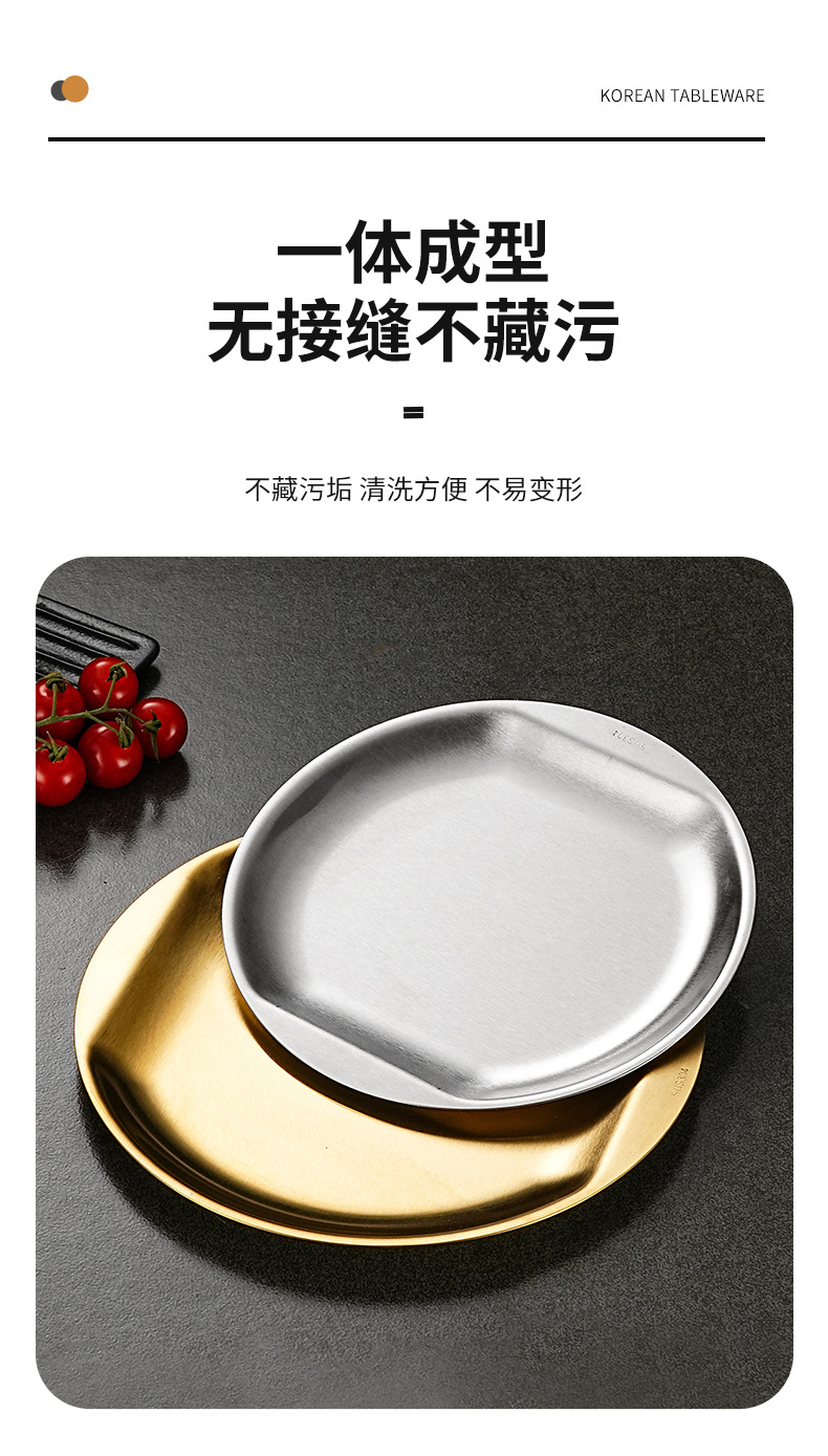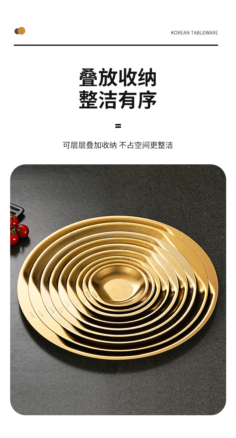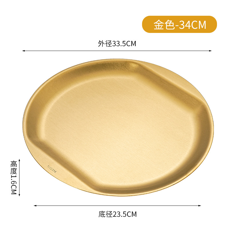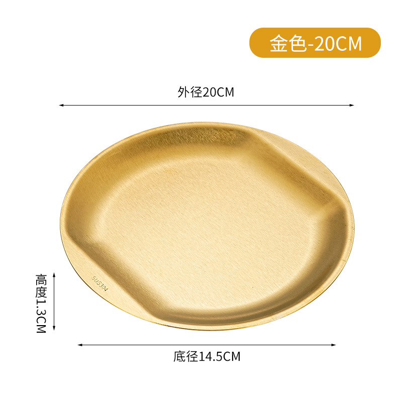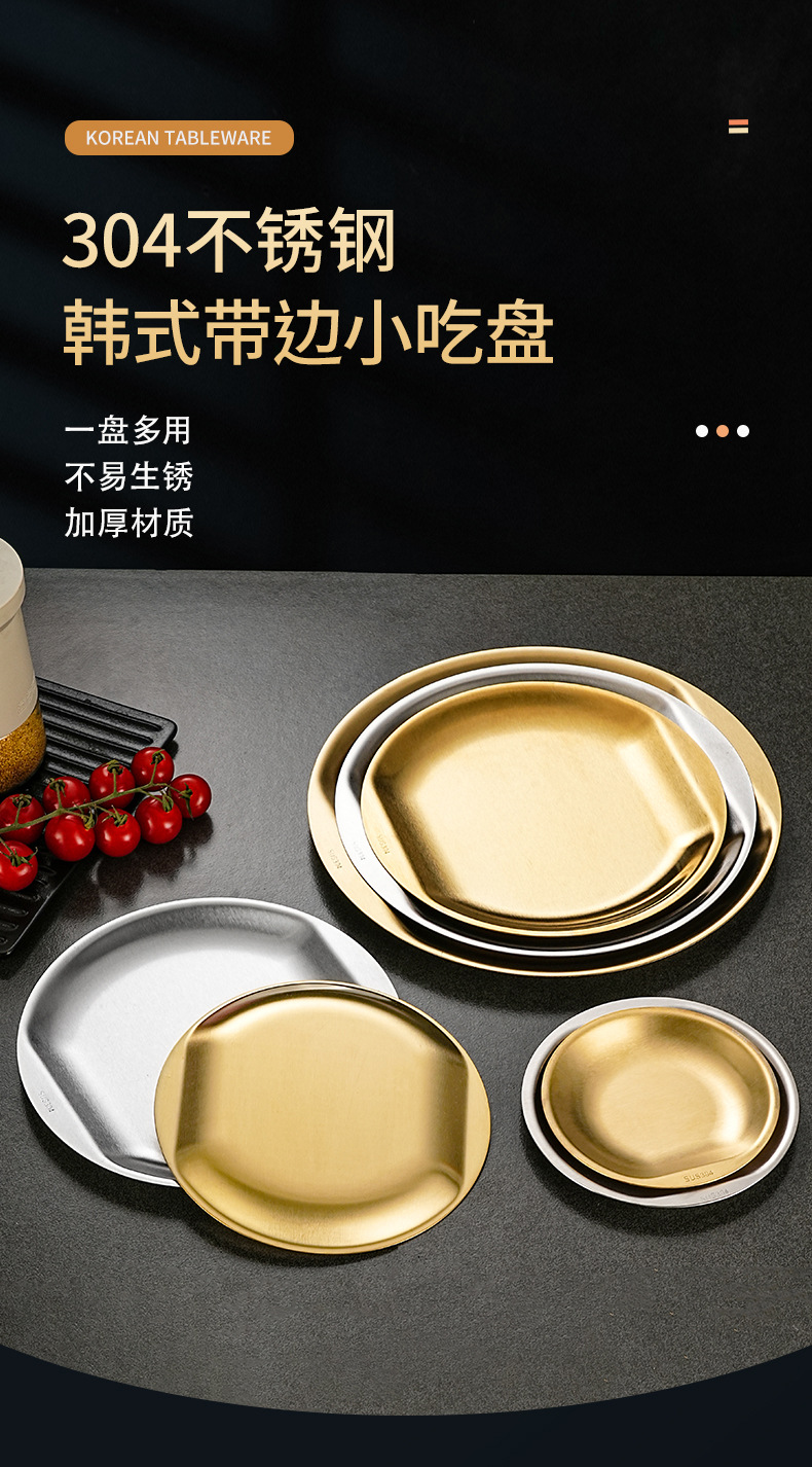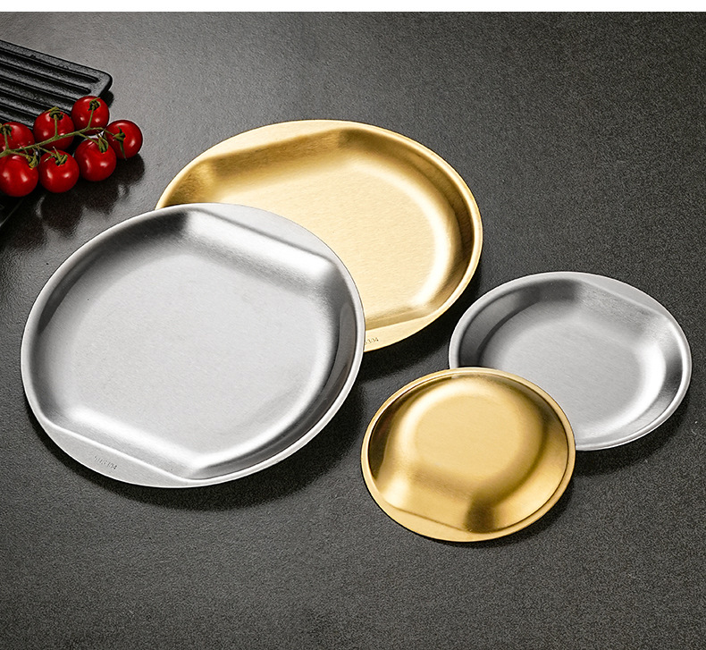 한국식 304 스테인레스 스틸 디스크 황금 스낵 플레이트 사이드 두껍게 바비큐 플레이트 창조적 인 딥 접시 과일 플레이트스토어 가기