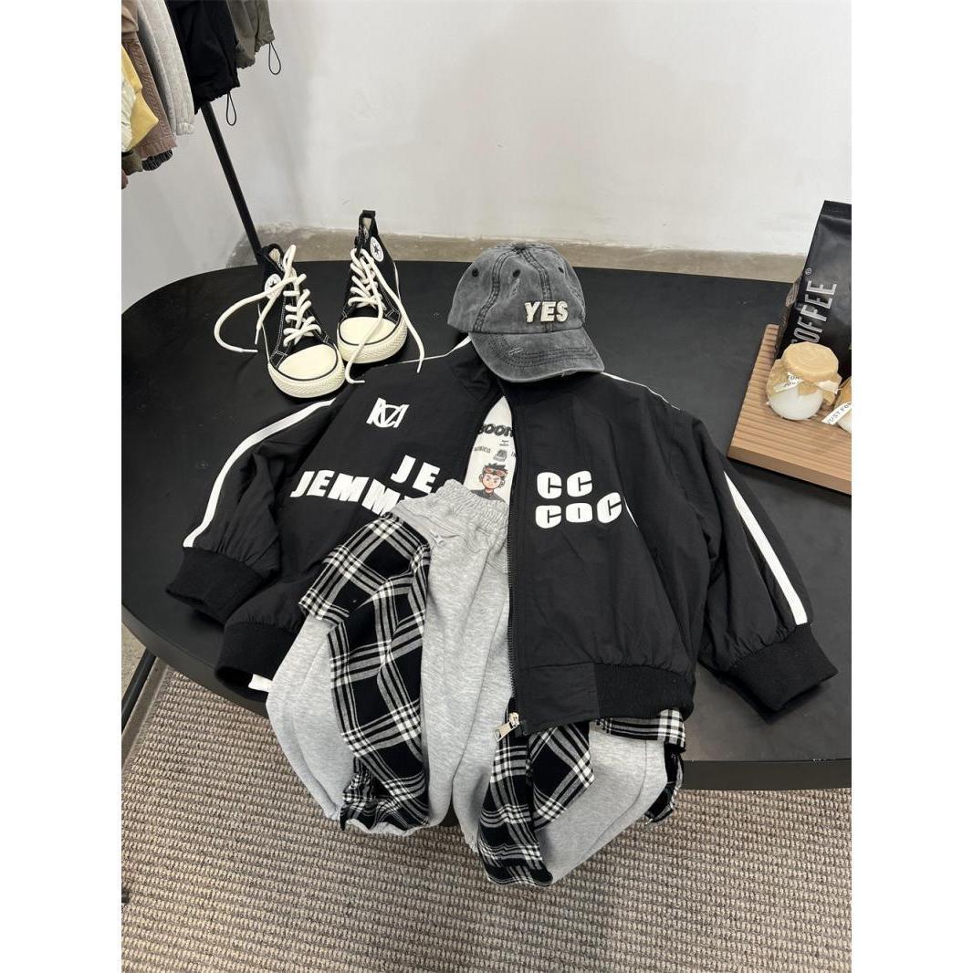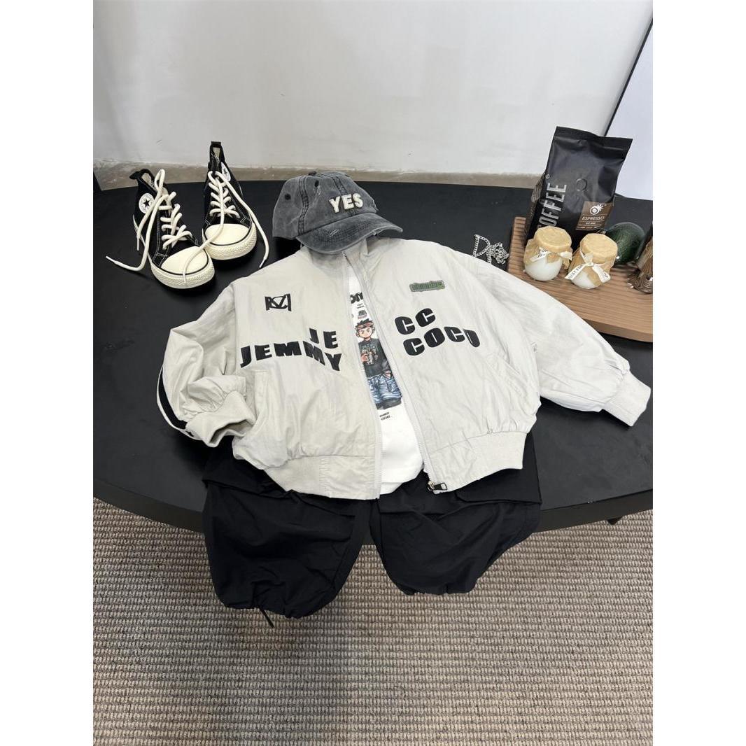 소년 편지 재킷 코트 2024 봄과 가을 어린이 잘 생긴 야구 세트 아기 캐주얼 봄 느슨한 풀스토어 가기