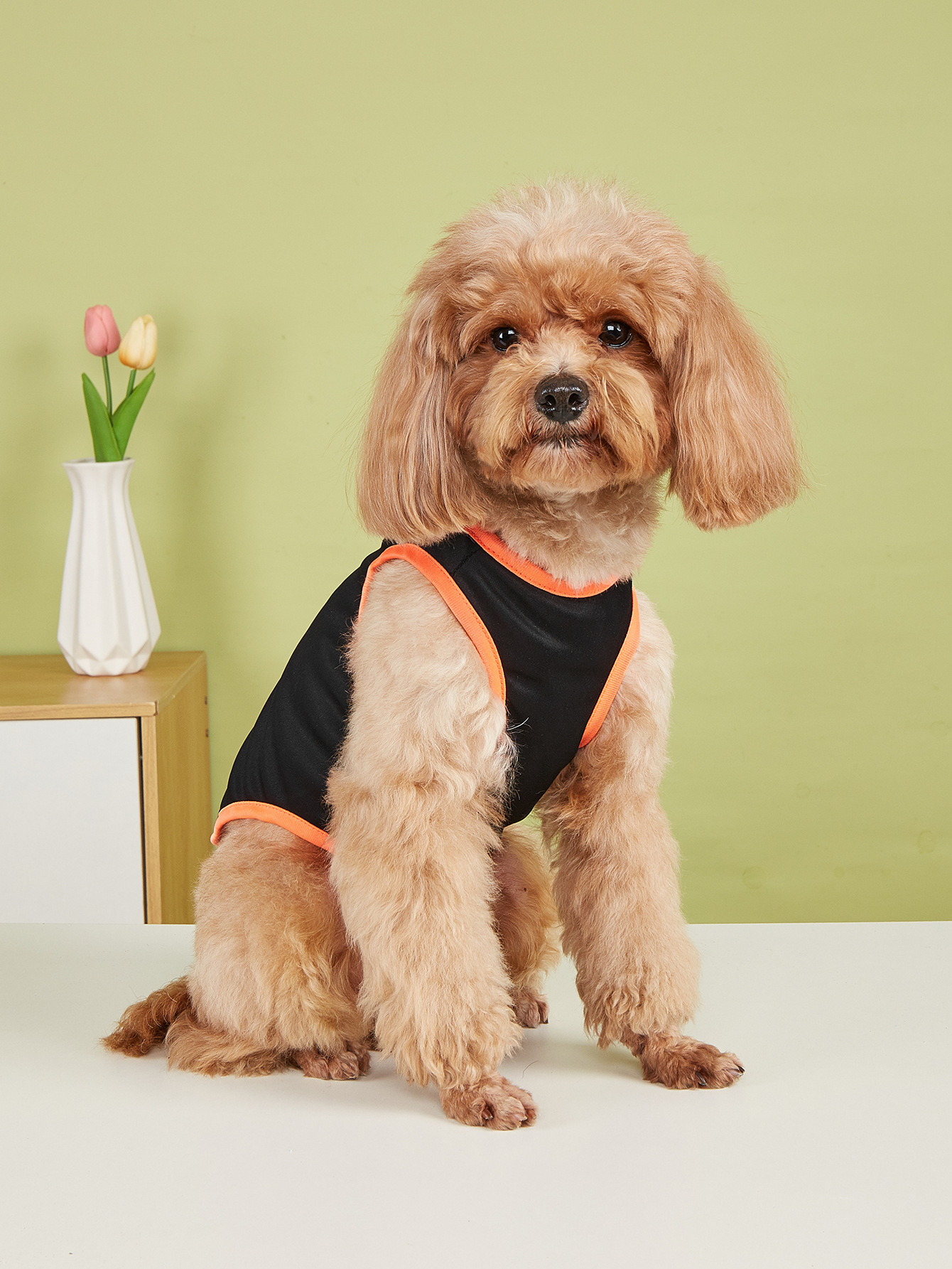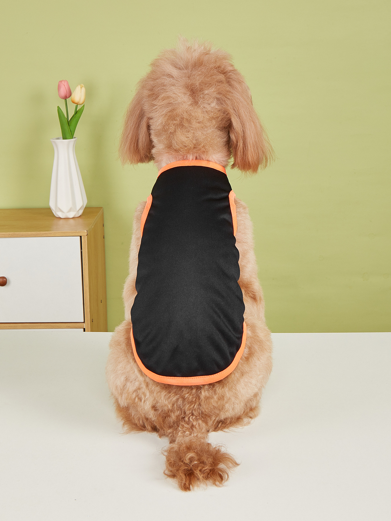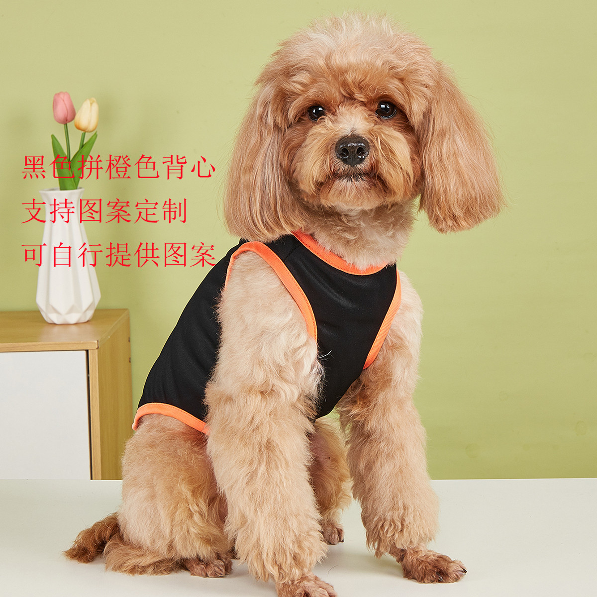 여름 얇은 애완견 조끼 검은 바느질 오렌지 옷은 패턴 봄과 가을 개 고양이 짧은 소매를 제공 할 수 있습니다