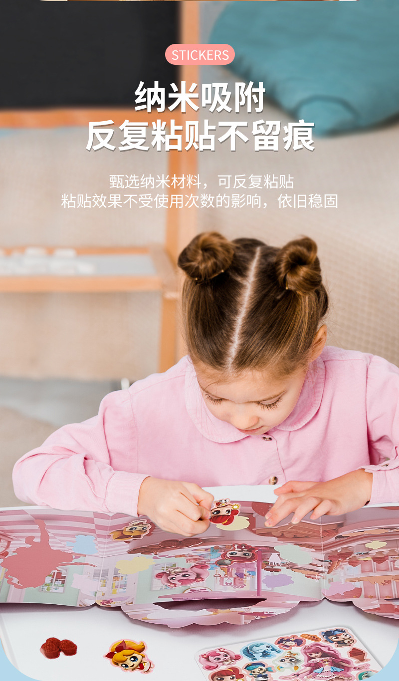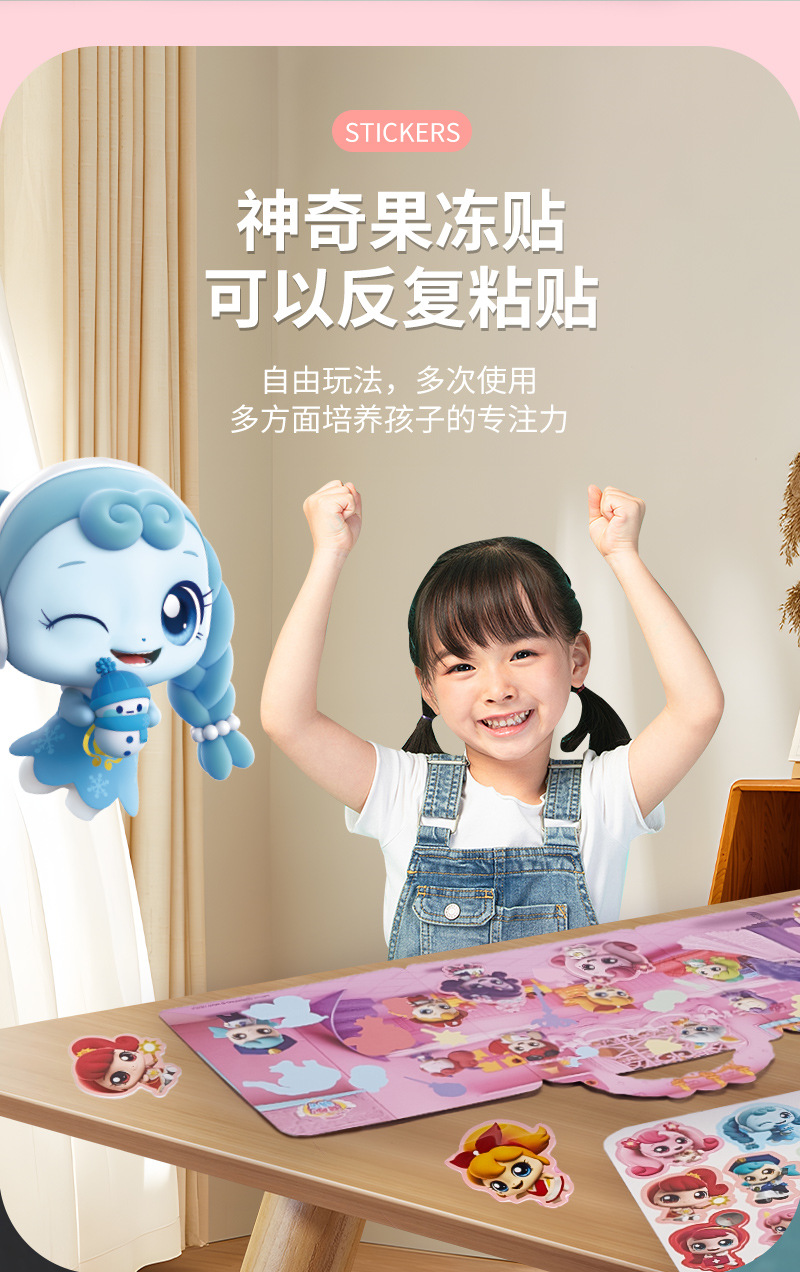 멋진 귀여운 젤리 스티커 책 재미있는 어린이 휴대용 3 ~ 6 세 유치원 소녀 반복적으로 붙여 넣기 스티커