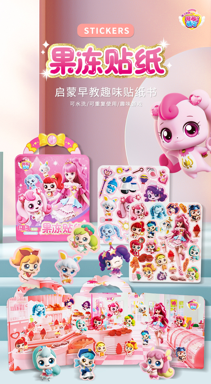 멋진 귀여운 젤리 스티커 책 재미있는 어린이 휴대용 3 ~ 6 세 유치원 소녀 반복적으로 붙여 넣기 스티커스토어 가기