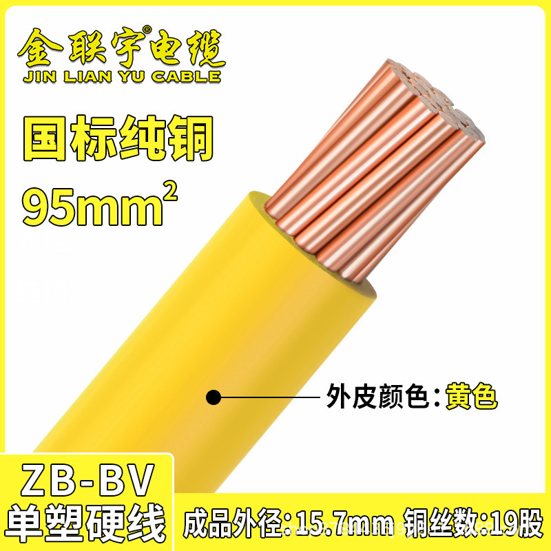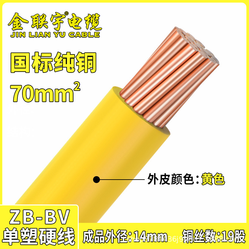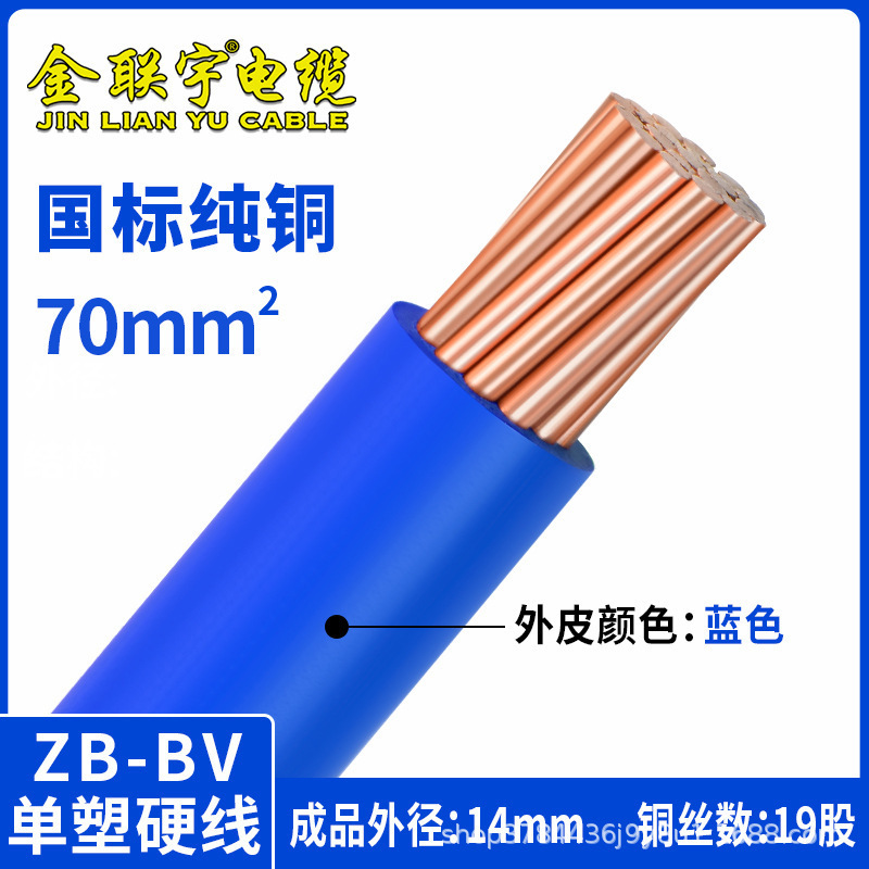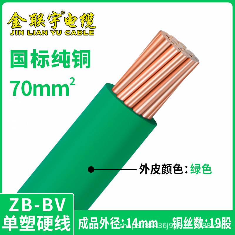 진 롄유 케이블 GB BV70 95 120 평방 구리 코어 와이어 단일 플라스틱 하드 와이어 난연 엔지니어링 와이어 느슨한 전단