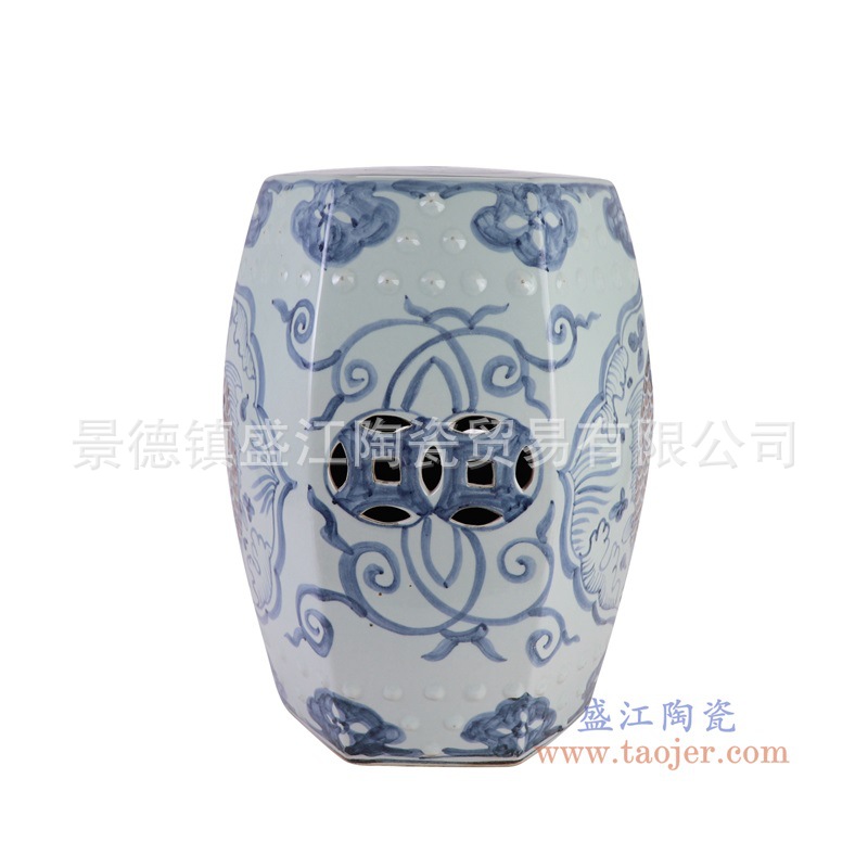 产 品 名 称:仿古手绘青花釉里红六方凳子