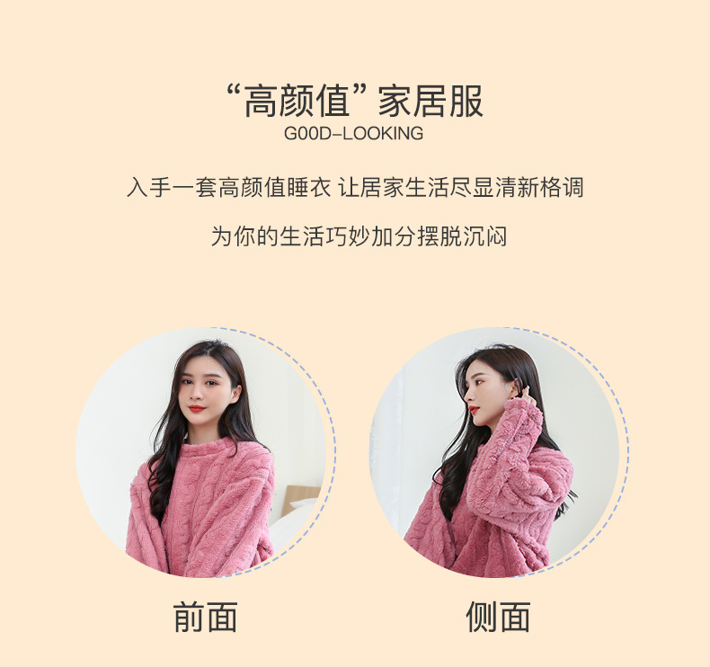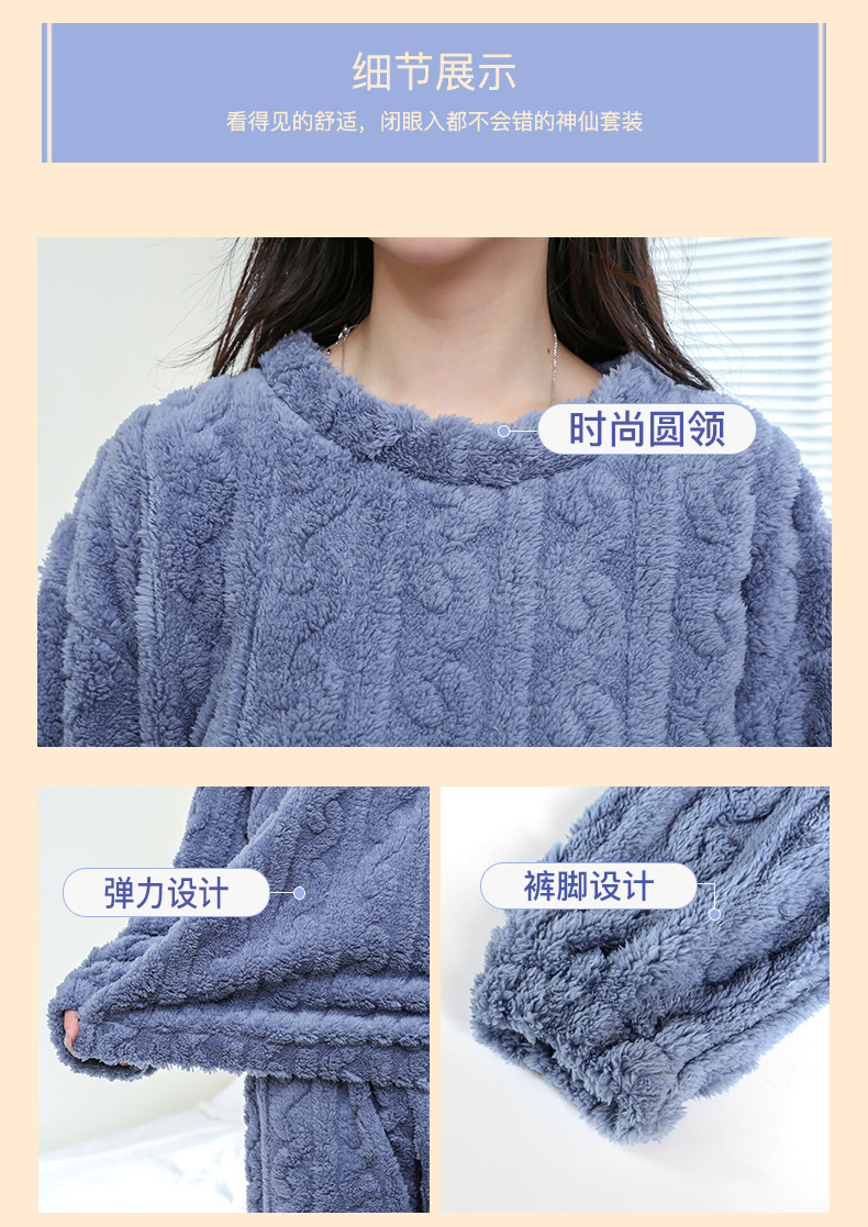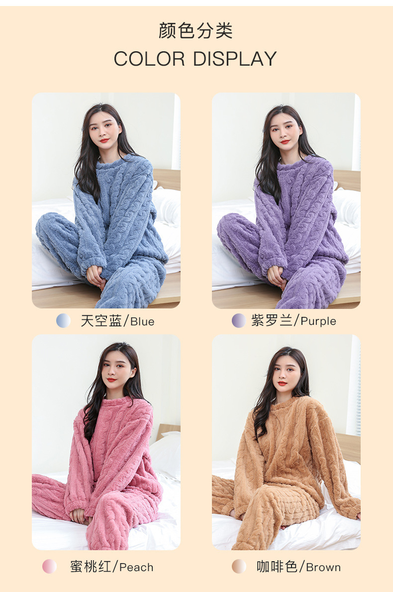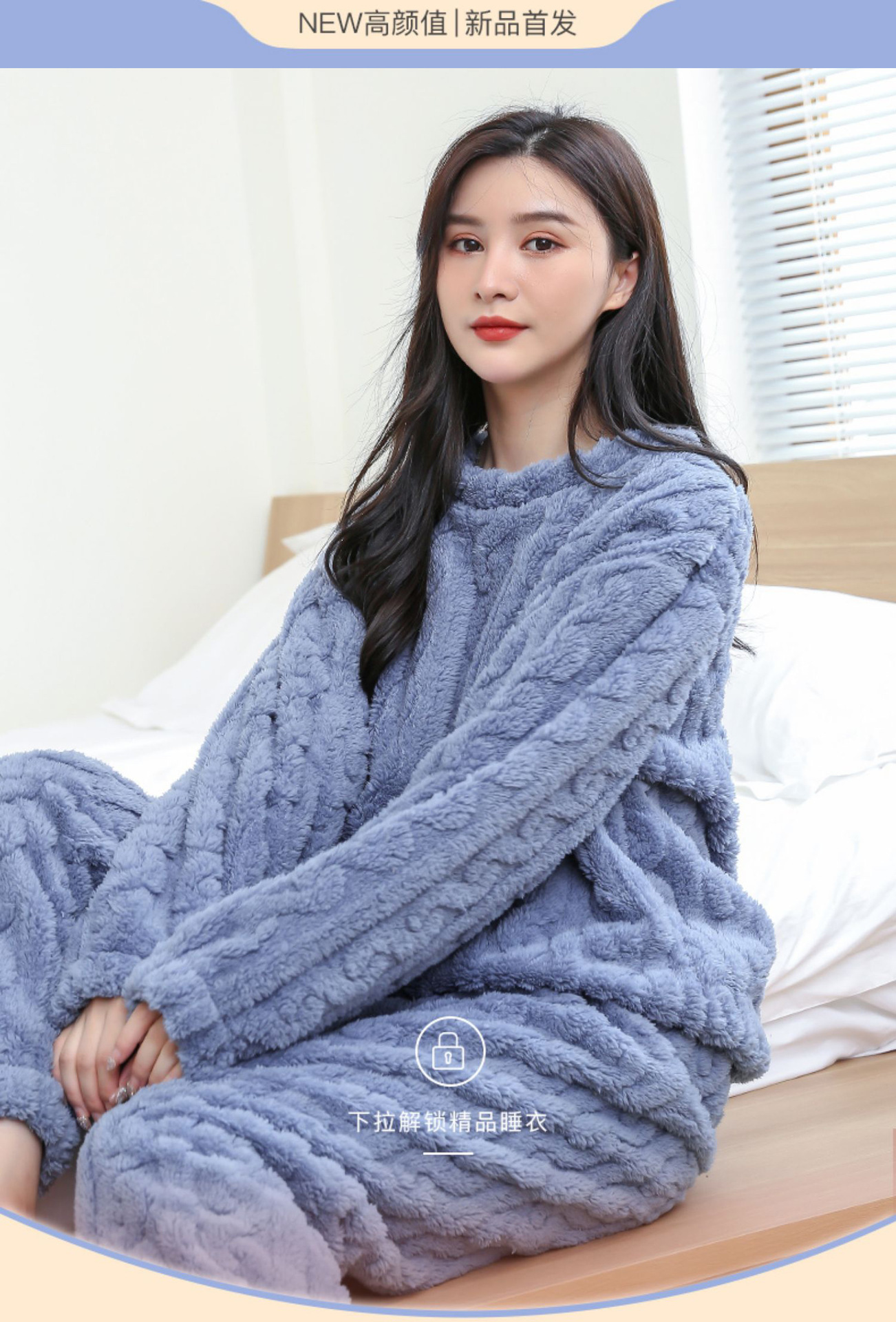 산호 벨벳 파자마 기모 여자 가을과 겨울 2023 새로운 슈퍼 두꺼운 벨벳 단색 홈 옷을 세트 두꺼운 자카드스토어 가기