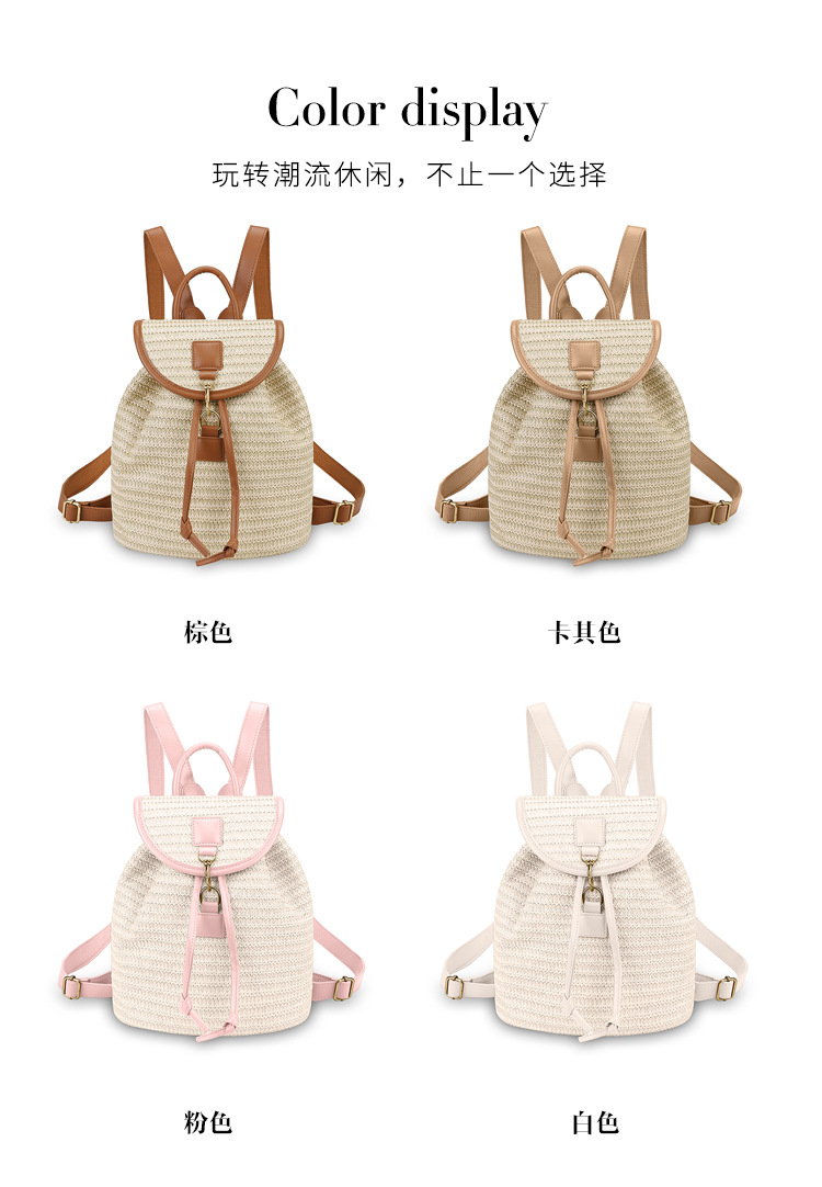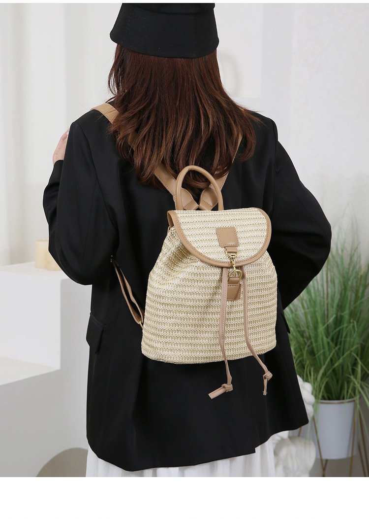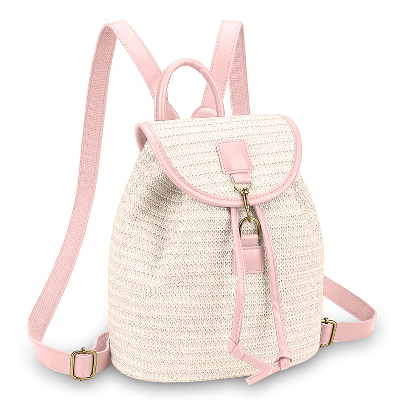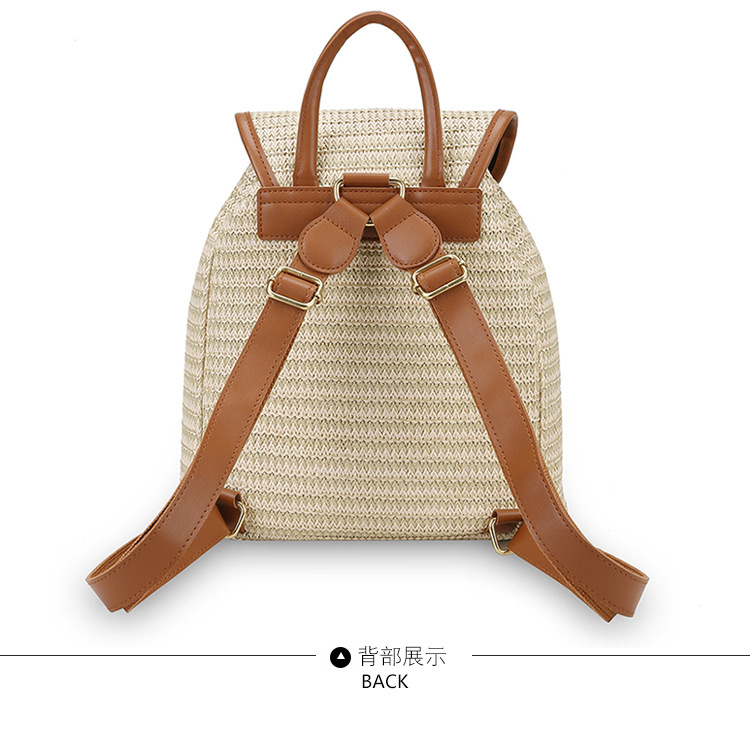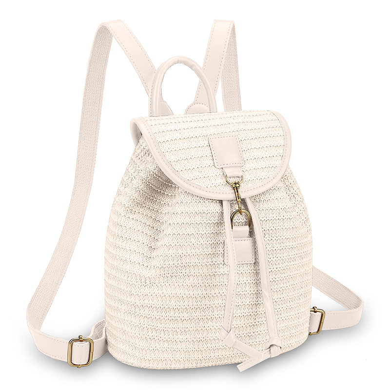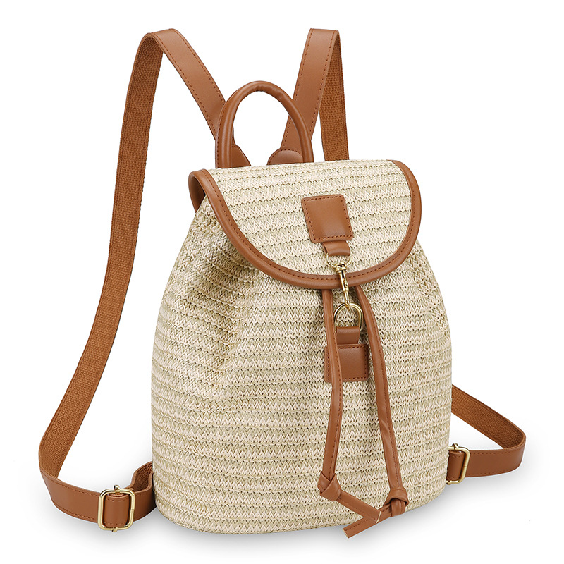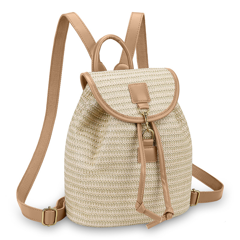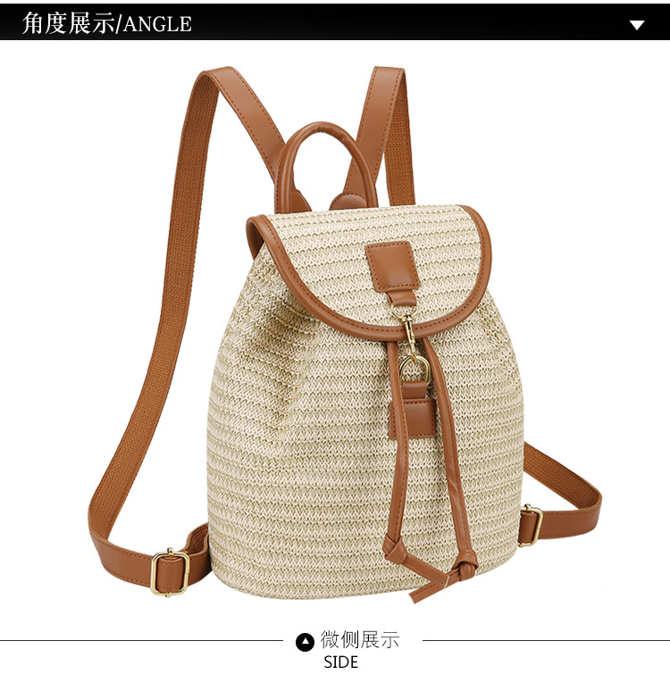 새로운 스타일 간단한 스플 라이스 백 커버 스타일 드로우 버킷 스트로우 백 휴가 여행 여성 짠 배낭스토어 가기