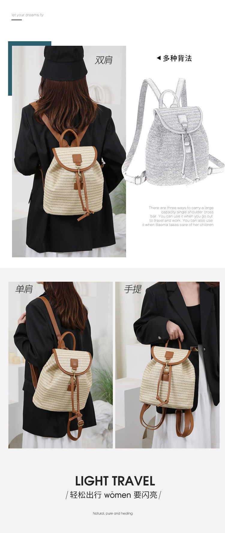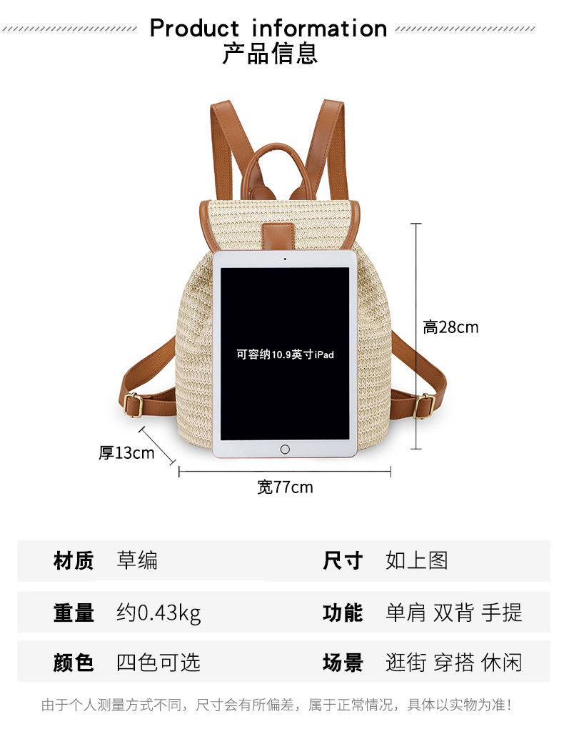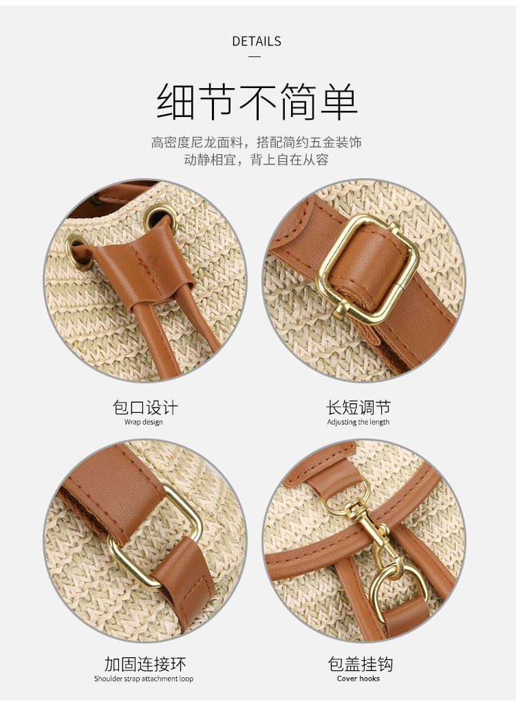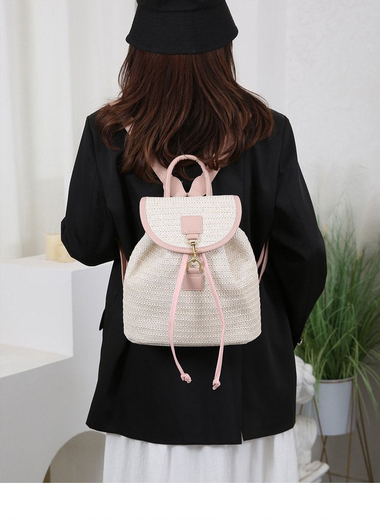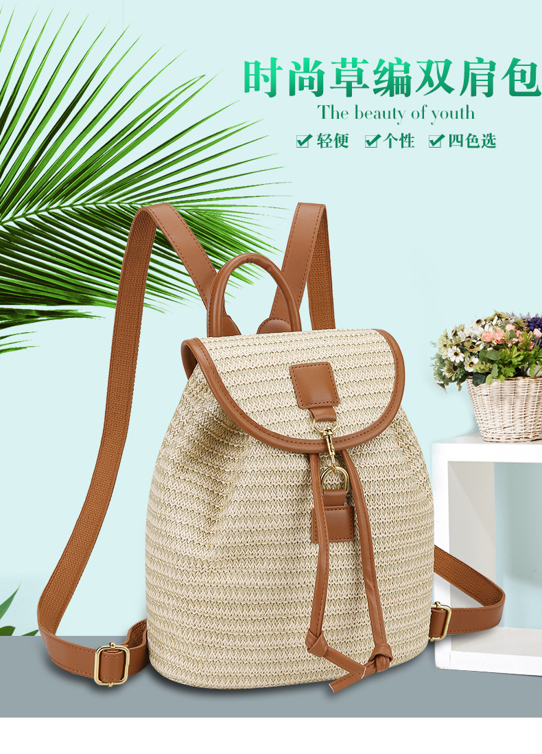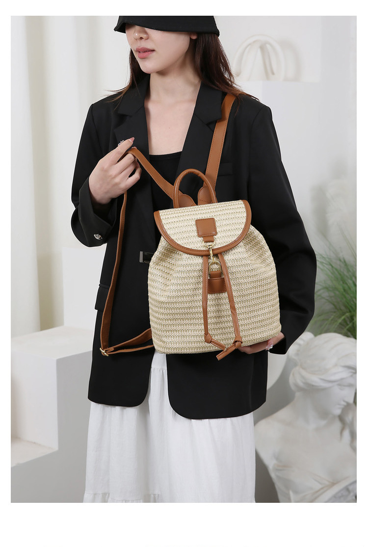 새로운 스타일 간단한 스플 라이스 백 커버 스타일 드로우 버킷 스트로우 백 휴가 여행 여성 짠 배낭스토어 가기