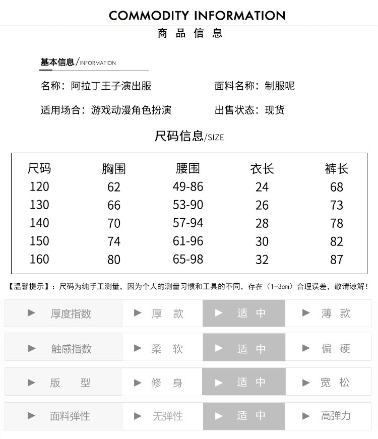 할로윈 의상 Pettigir Aladdin 의상 애니메이션 같은 어린이 코스프레 무대 의상