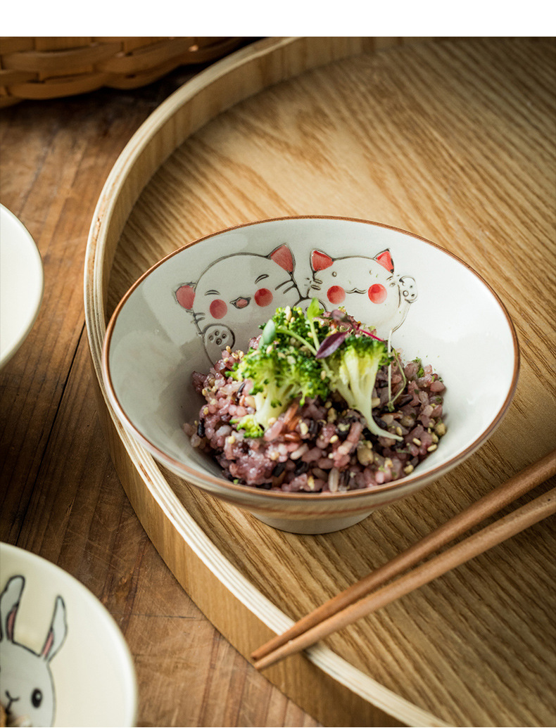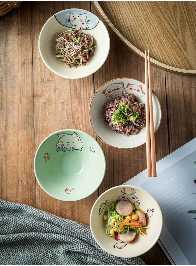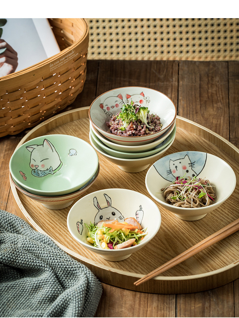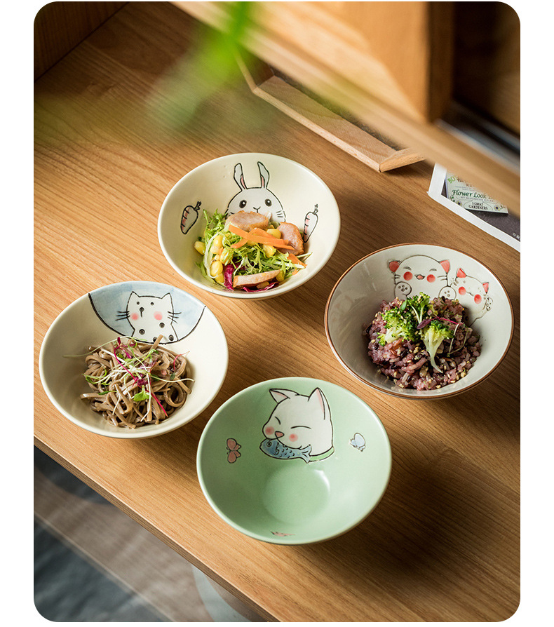 일본식 그릇 가정용 밥 그릇 작은 수프 그릇 죽 그릇 샐러드 그릇 창조적 인 세라믹 그릇 뿔 그릇 식기 도매스토어 가기