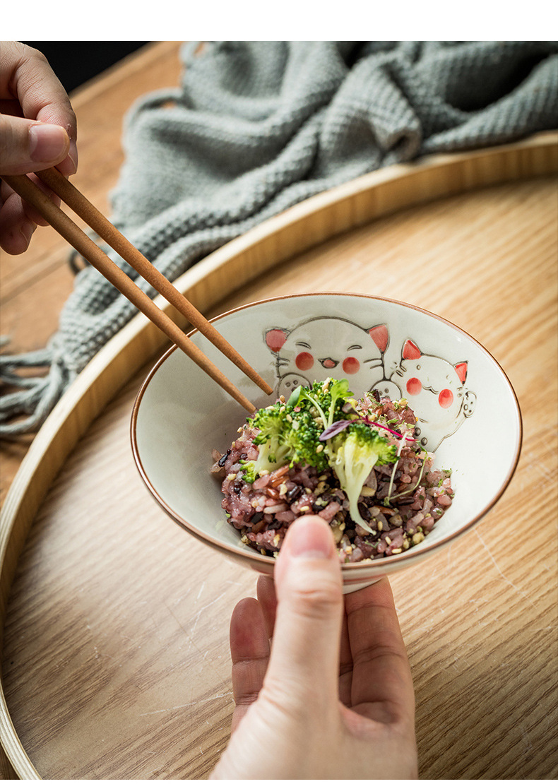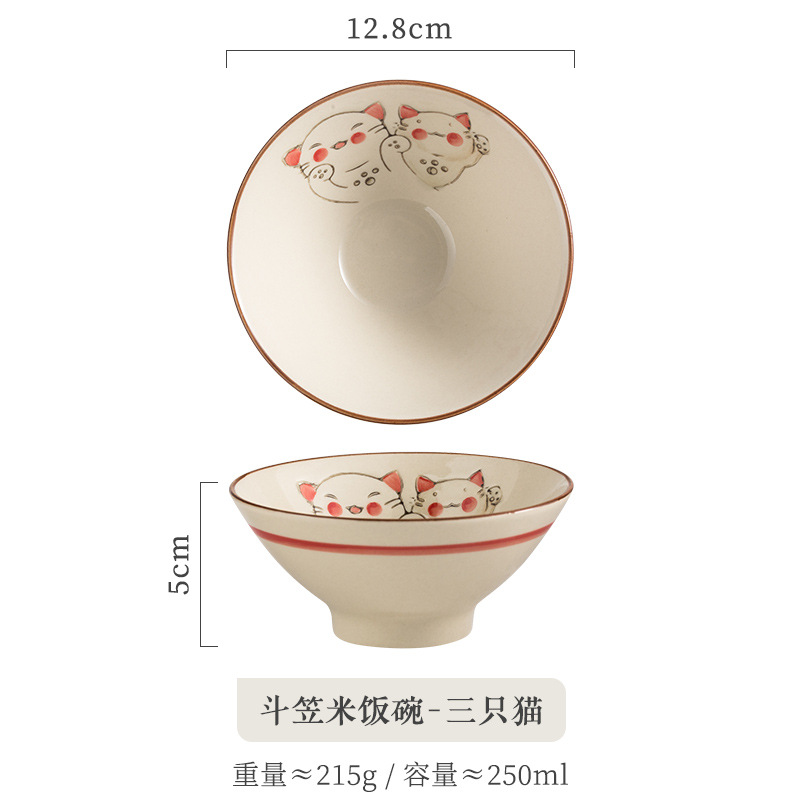 • Buckhat 쌀 그릇-세 고양이