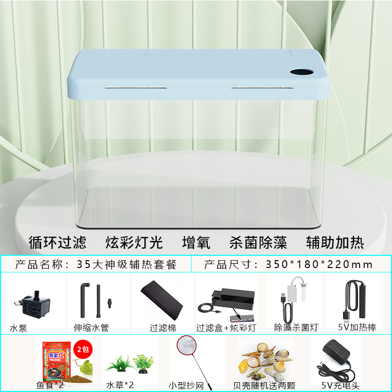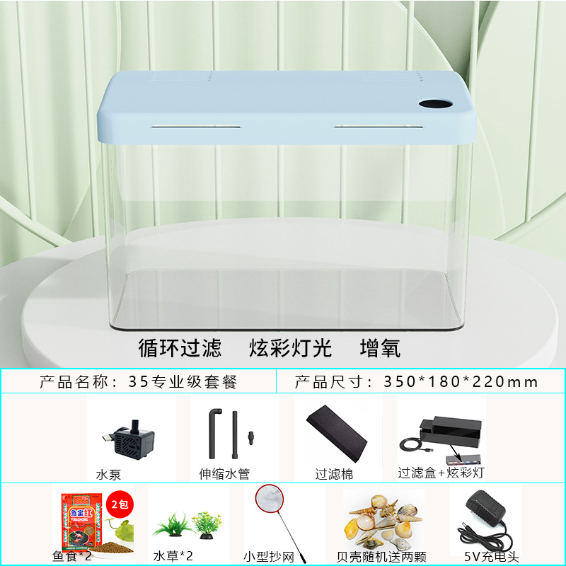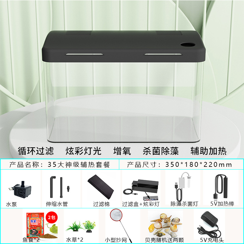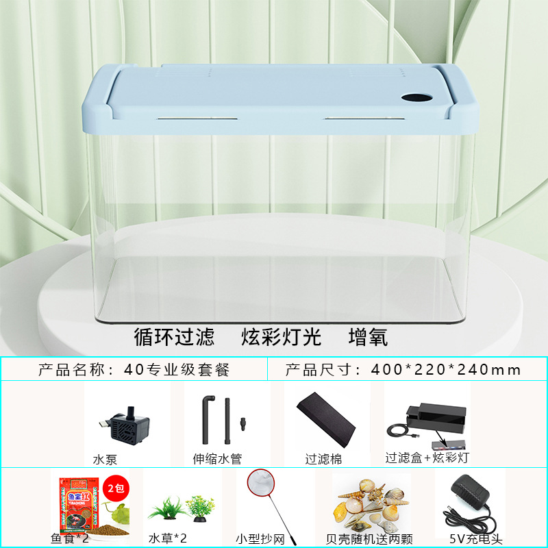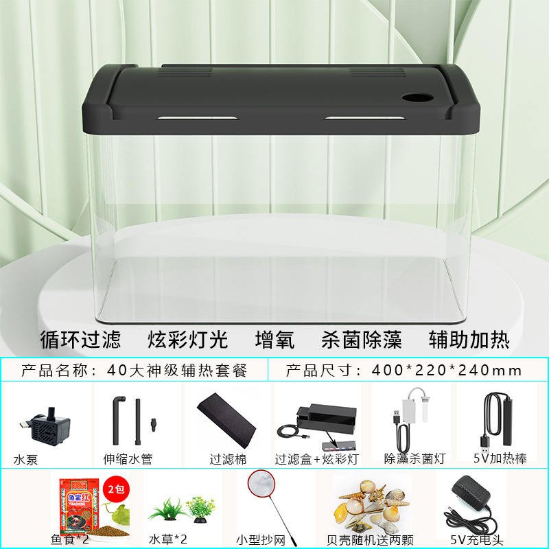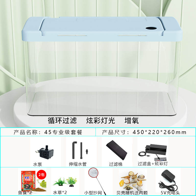 물고기 탱크 수족관 게으른 투명한 물고기 탱크 거실 가정용 작은 생태 데스크탑 탱크 열대 물고기 탱크 필터스토어 가기