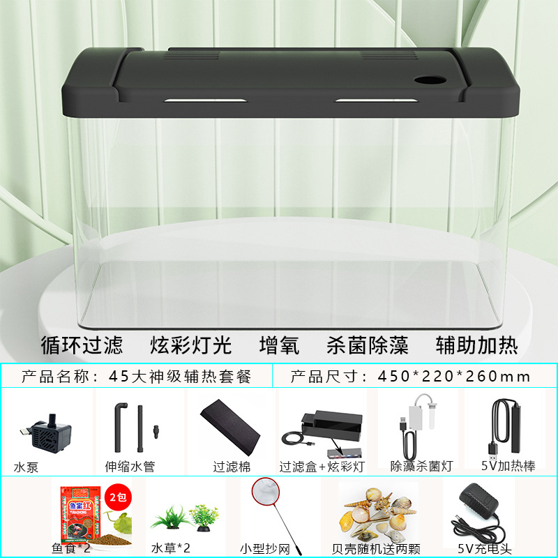 물고기 탱크 수족관 게으른 투명한 물고기 탱크 거실 가정용 작은 생태 데스크탑 탱크 열대 물고기 탱크 필터