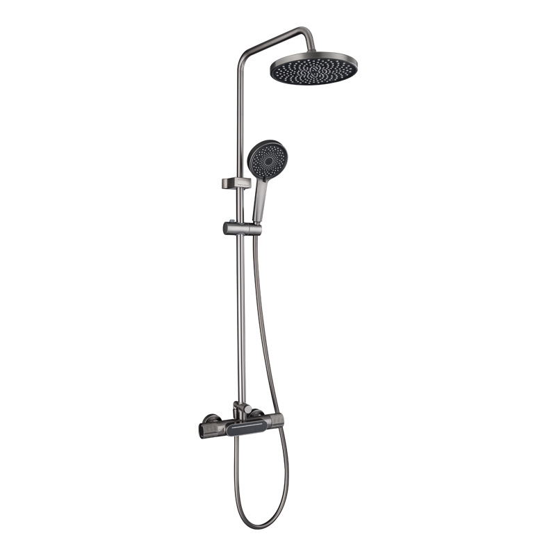 새로운 모든 구리 샤워 세트 물 도금 회색 일정한 온도 가정용 욕실 샤워 샤워 부스터 노즐
