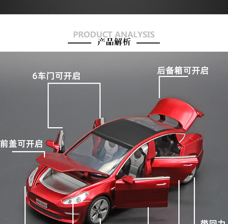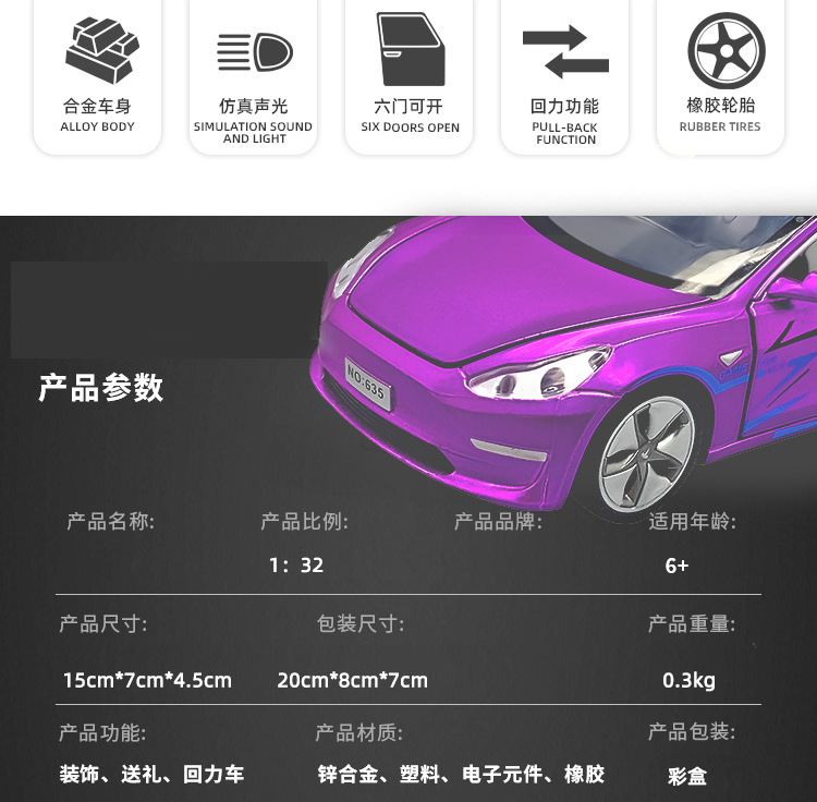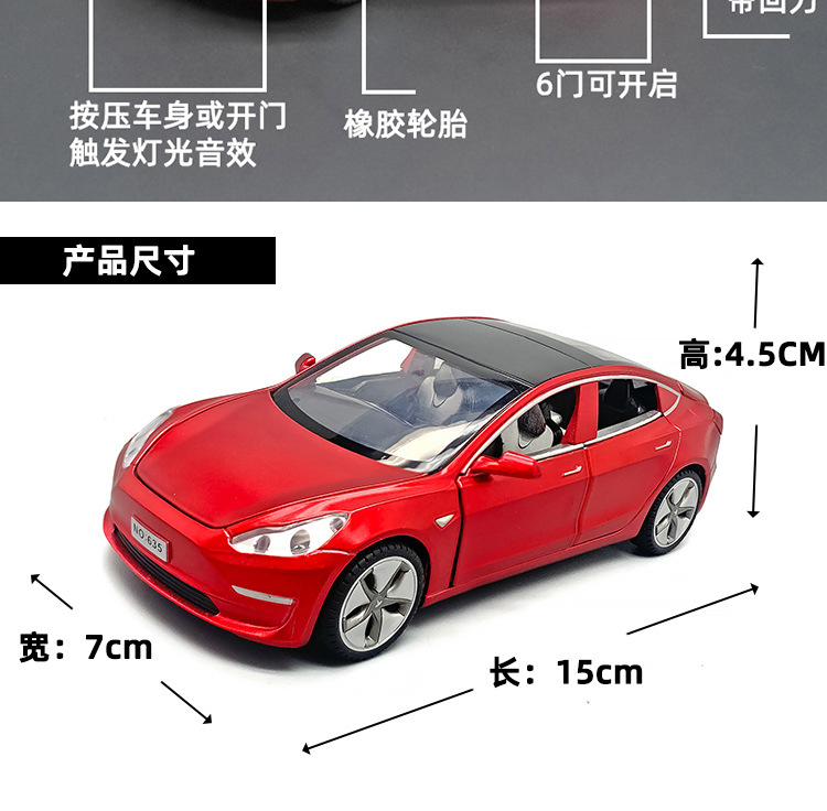 1/32 Tes 전기 자동차 합금 모델 MODEL3 시뮬레이션 조명 및 음향 효과 풀백 자동차와 동일한 스타일