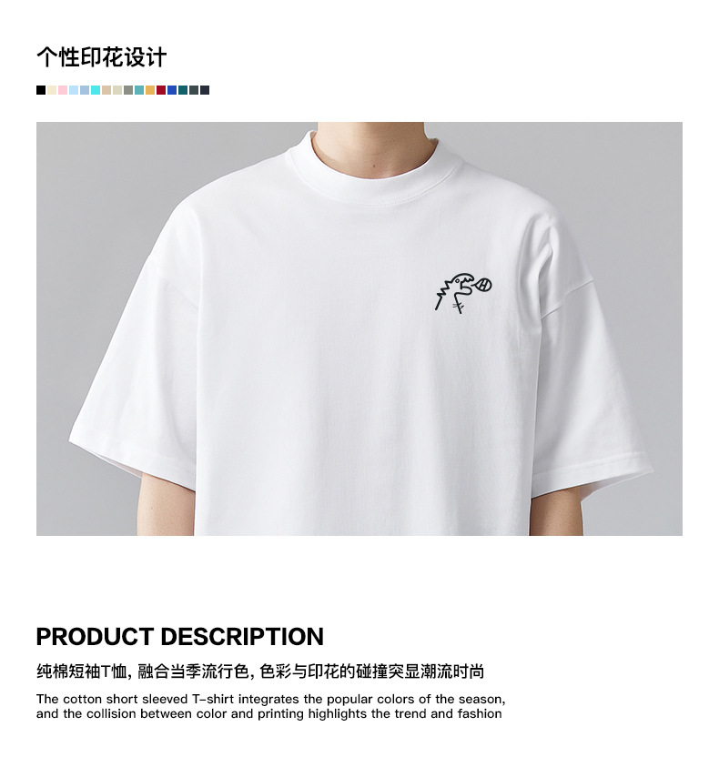 니치 짧은 펜 인쇄 남성용 반소매 코튼 티셔츠 새로운 캐주얼 라운드 넥 티셔츠 화이트 풀오버베이스 셔츠 탑
