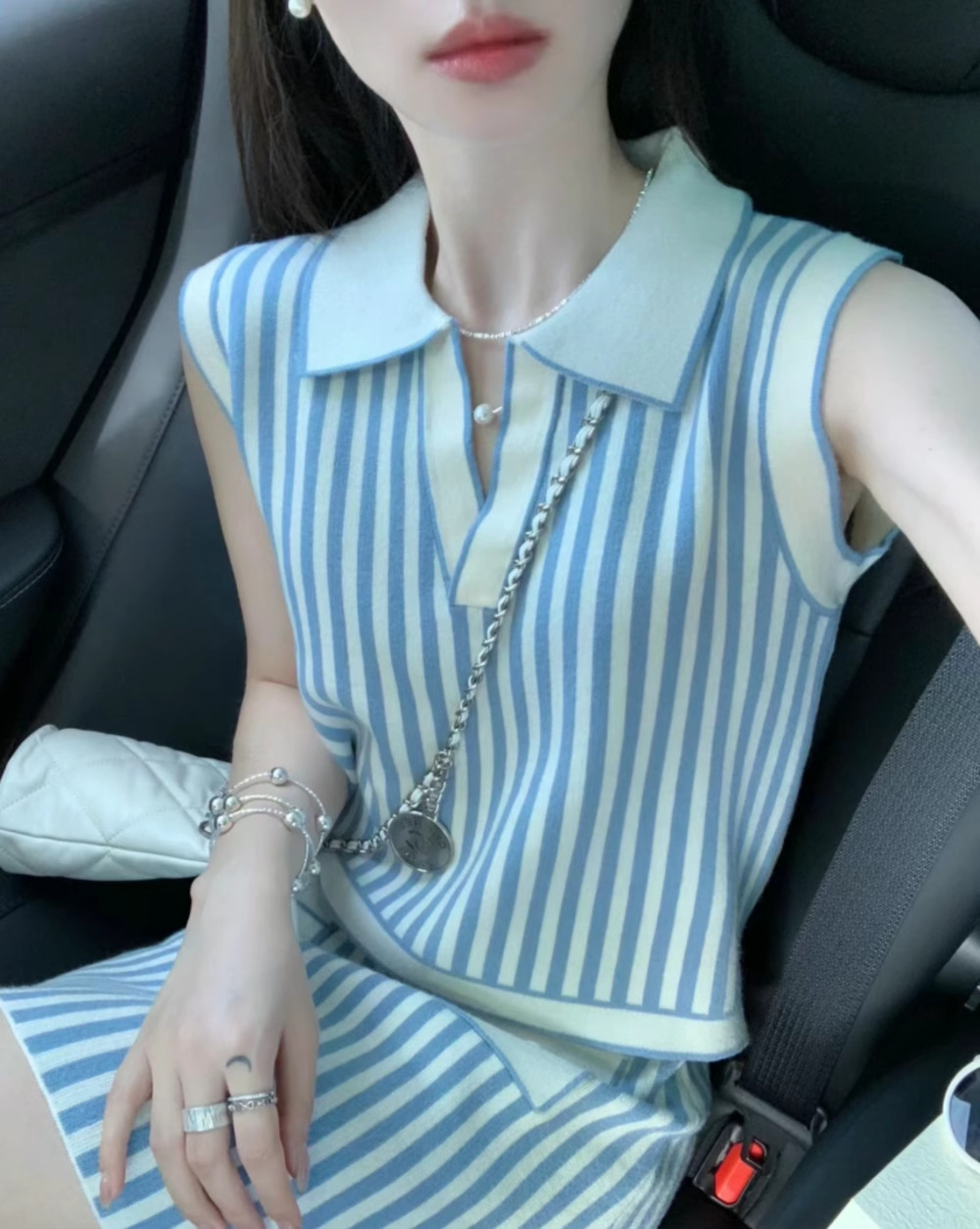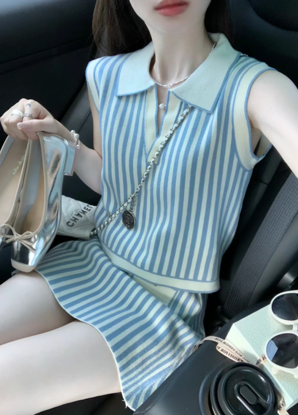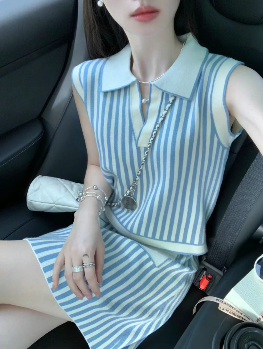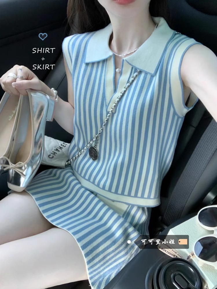 서양식 투피스 여성 세트 세트 패션 하이 엔드 느낌 작은 스타일 스트라이프 탑 스커트 세트와 여름 원피스