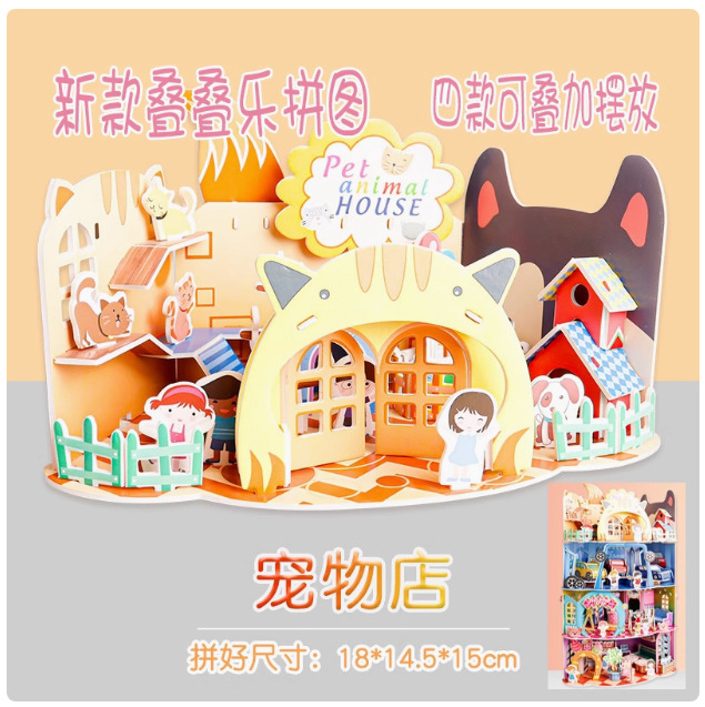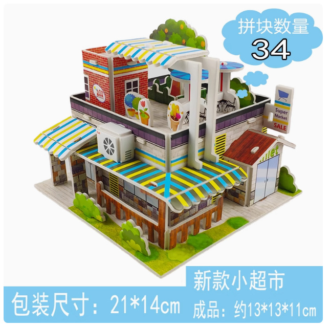 어린이 3d 종이 3 차원 직소 퍼즐 diy 오두막 건물 비행기 모델 조립 4-9 세 소년 소녀를위한 교육 장난감스토어 가기