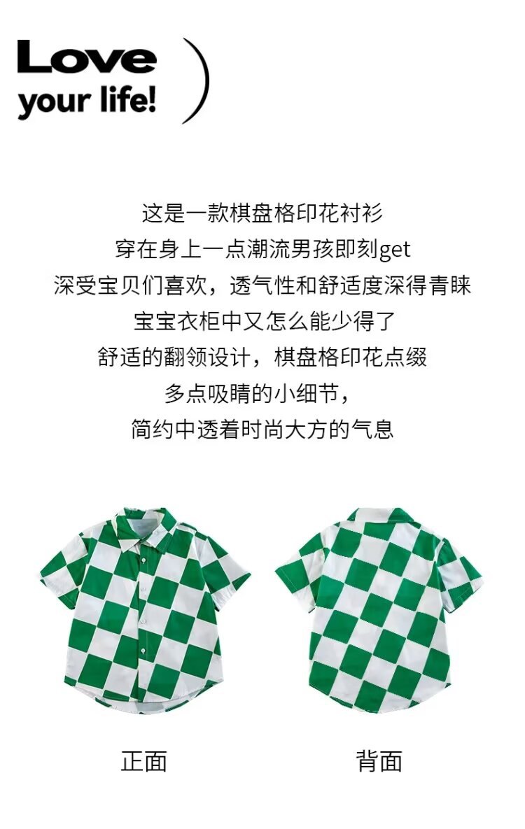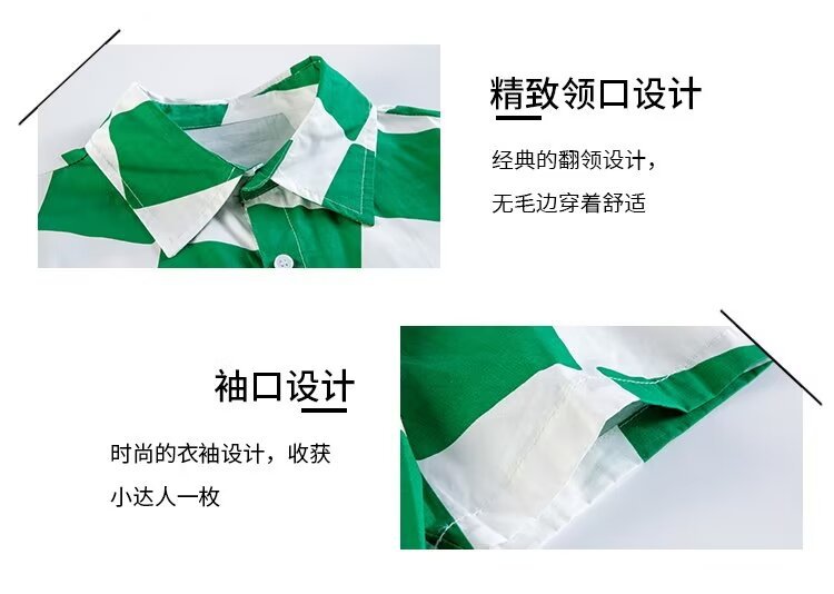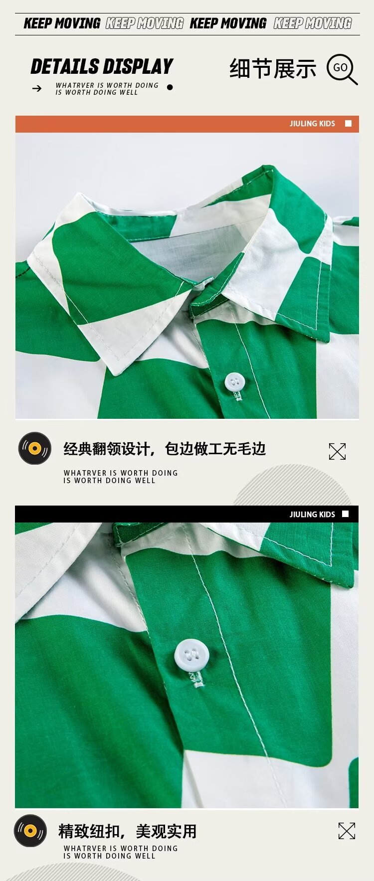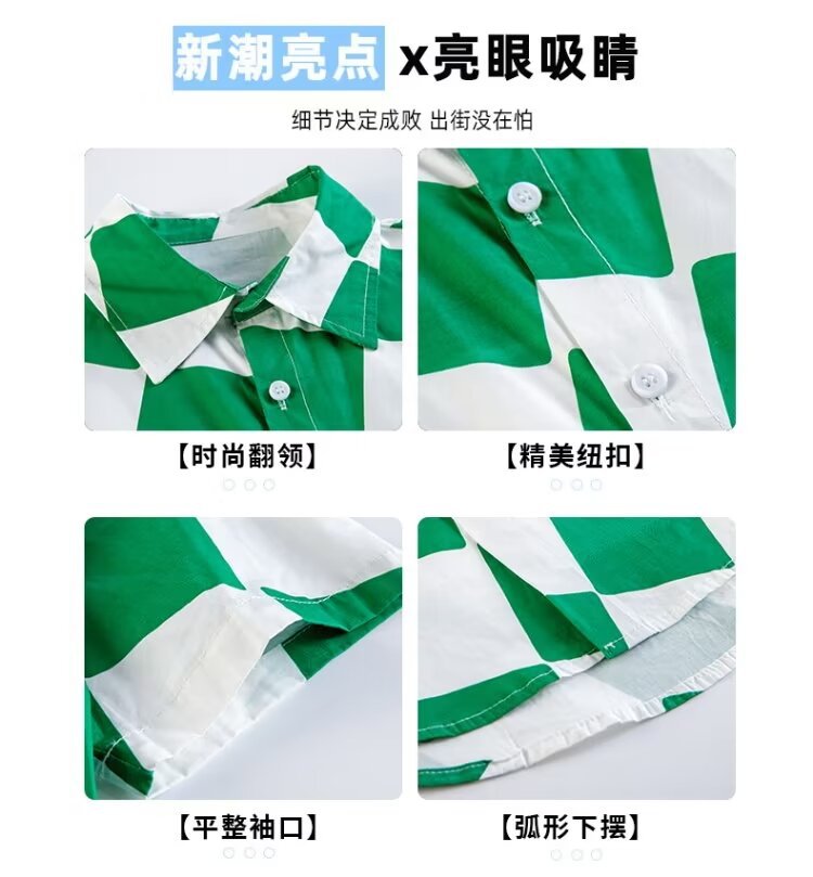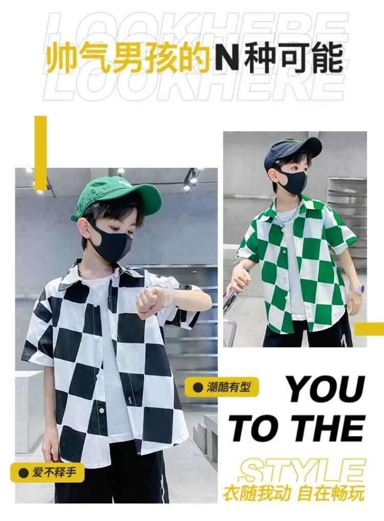 소년 반팔 격자 무늬 프린트 셔츠 2024 여름 스타일 중대형 어린이 캐주얼 라펠 얇은 셔츠 탑스토어 가기
