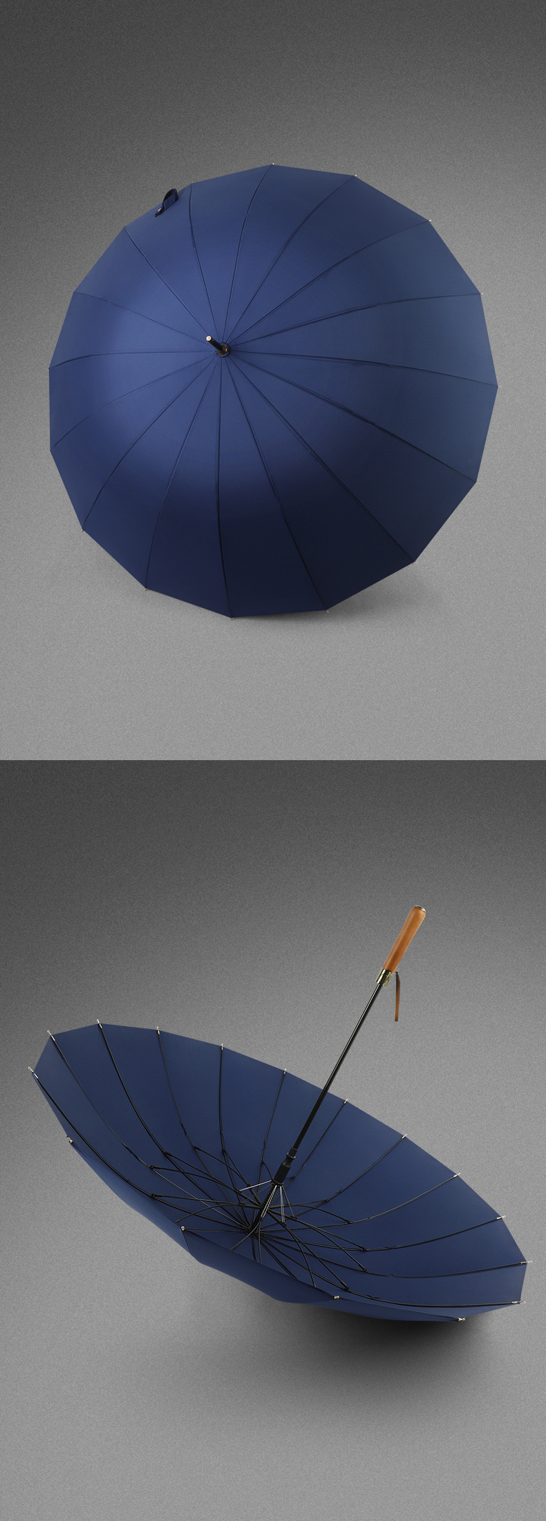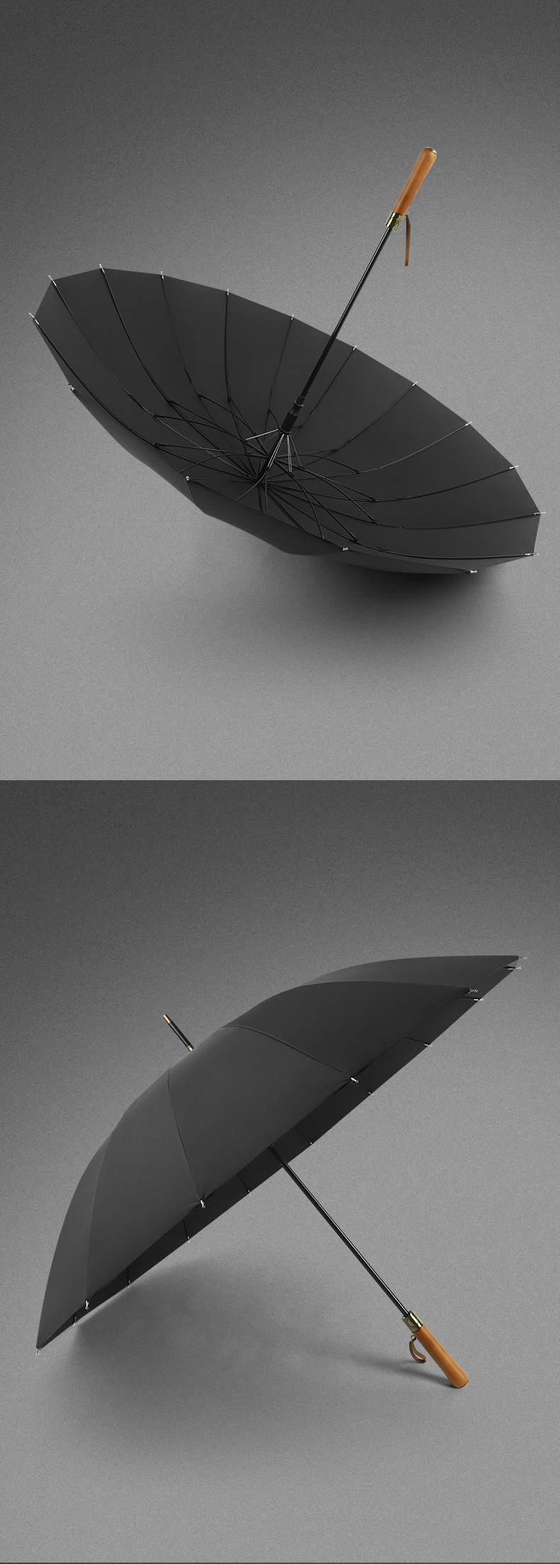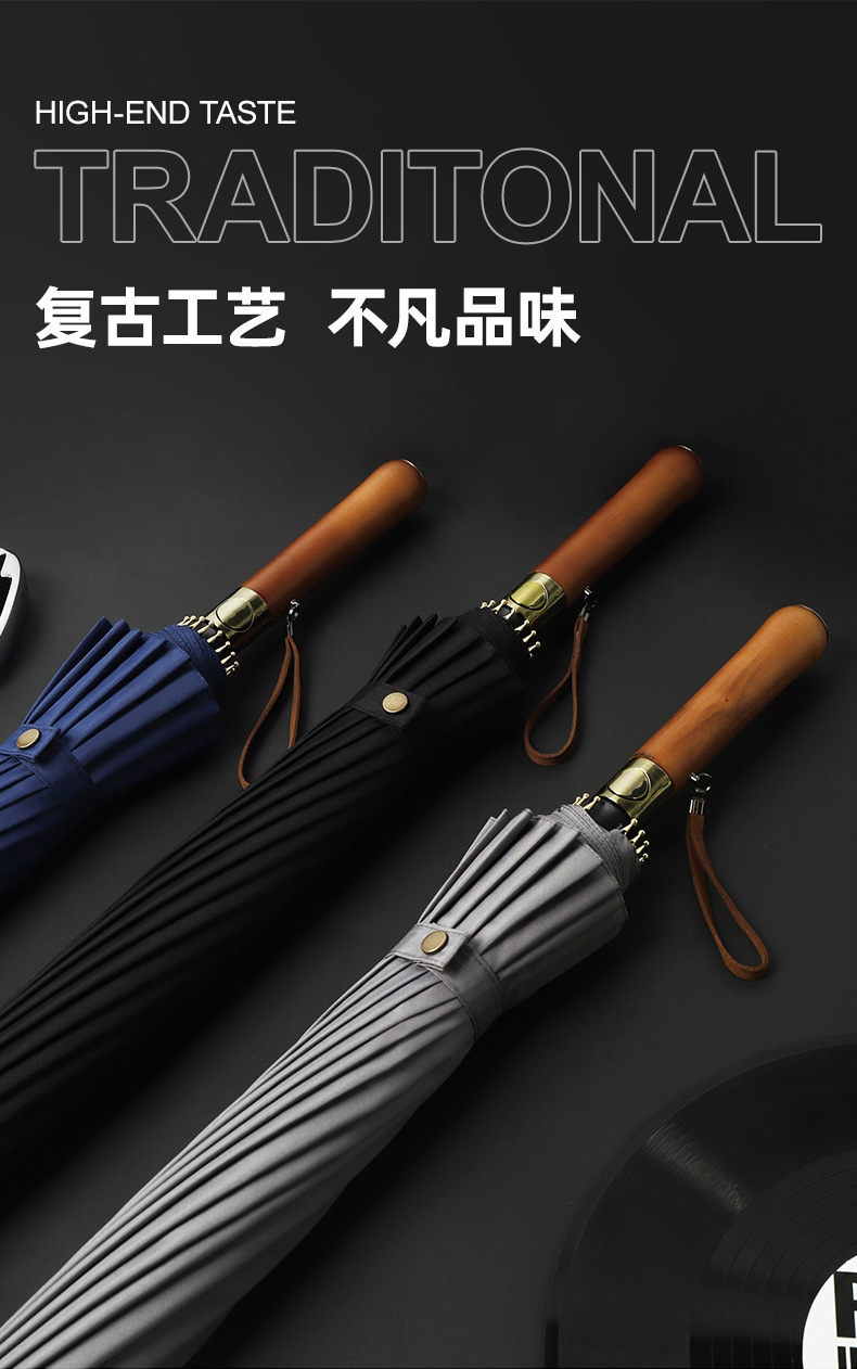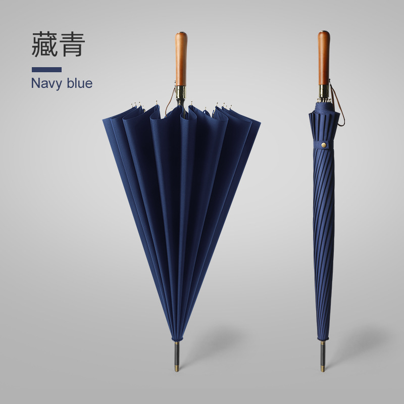16 뼈 나무 손잡이 골프 우산 이중 바람 방지 스트레이트 긴 손잡이 우산 남성 비즈니스 광고 선물 우산스토어 가기