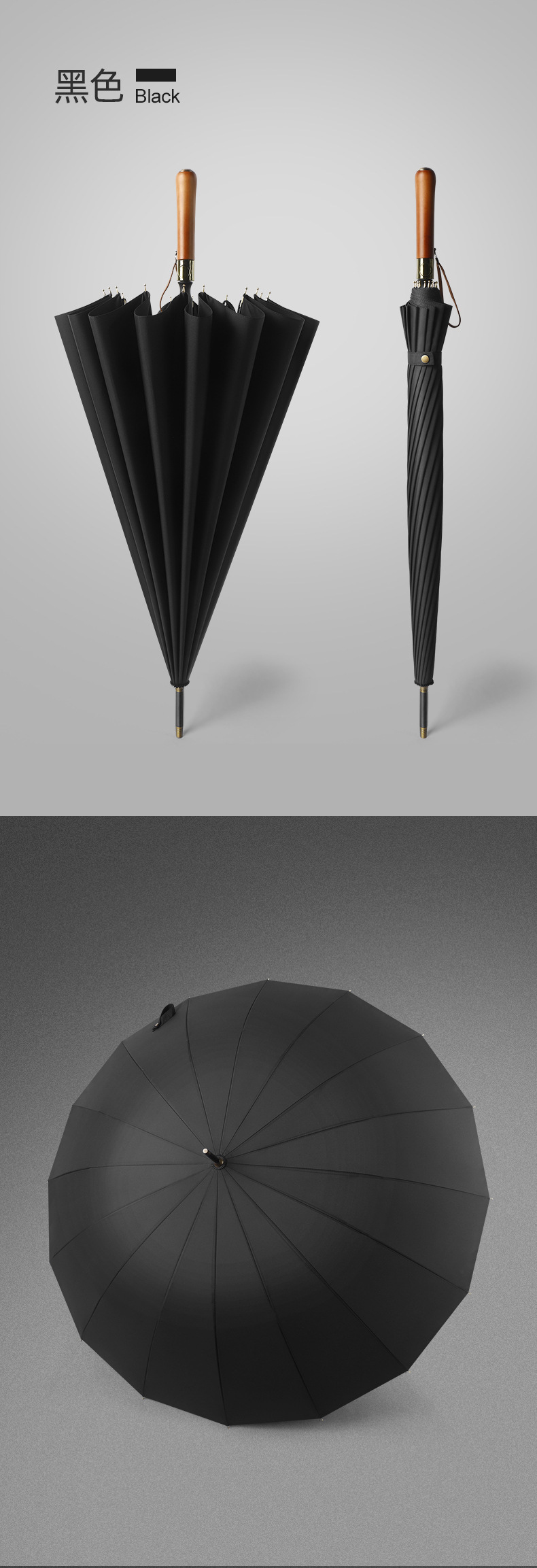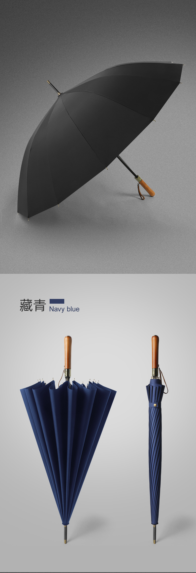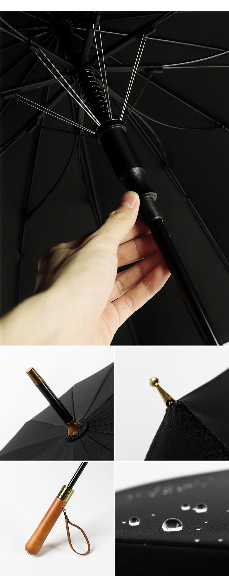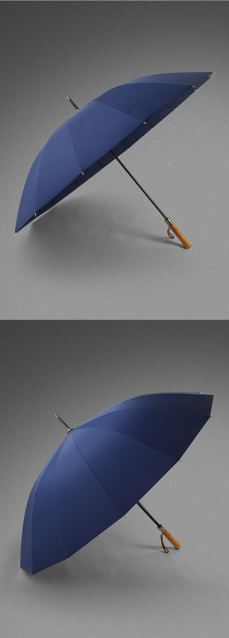 16 뼈 나무 손잡이 골프 우산 이중 바람 방지 스트레이트 긴 손잡이 우산 남성 비즈니스 광고 선물 우산스토어 가기