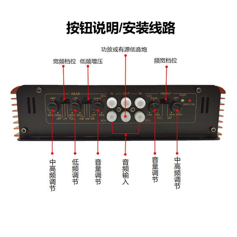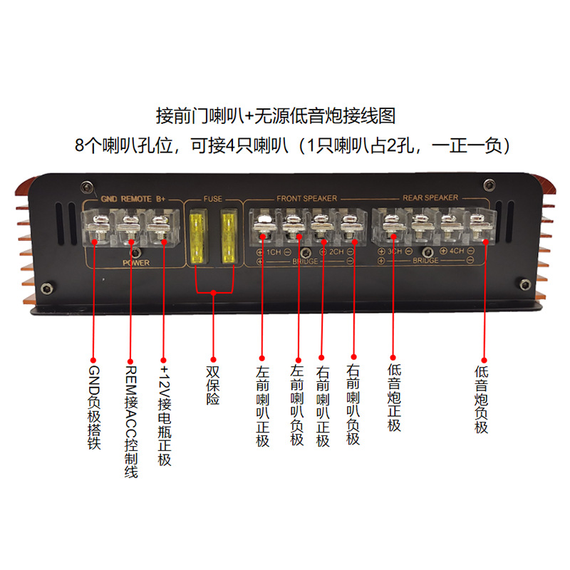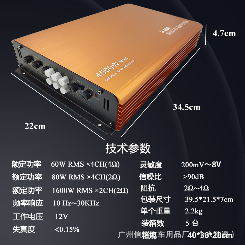 공장 직접 판매 고출력 자동차 오디오 수정 전력 증폭기 H-608 4채널 4방향 자동차 전력 증폭기