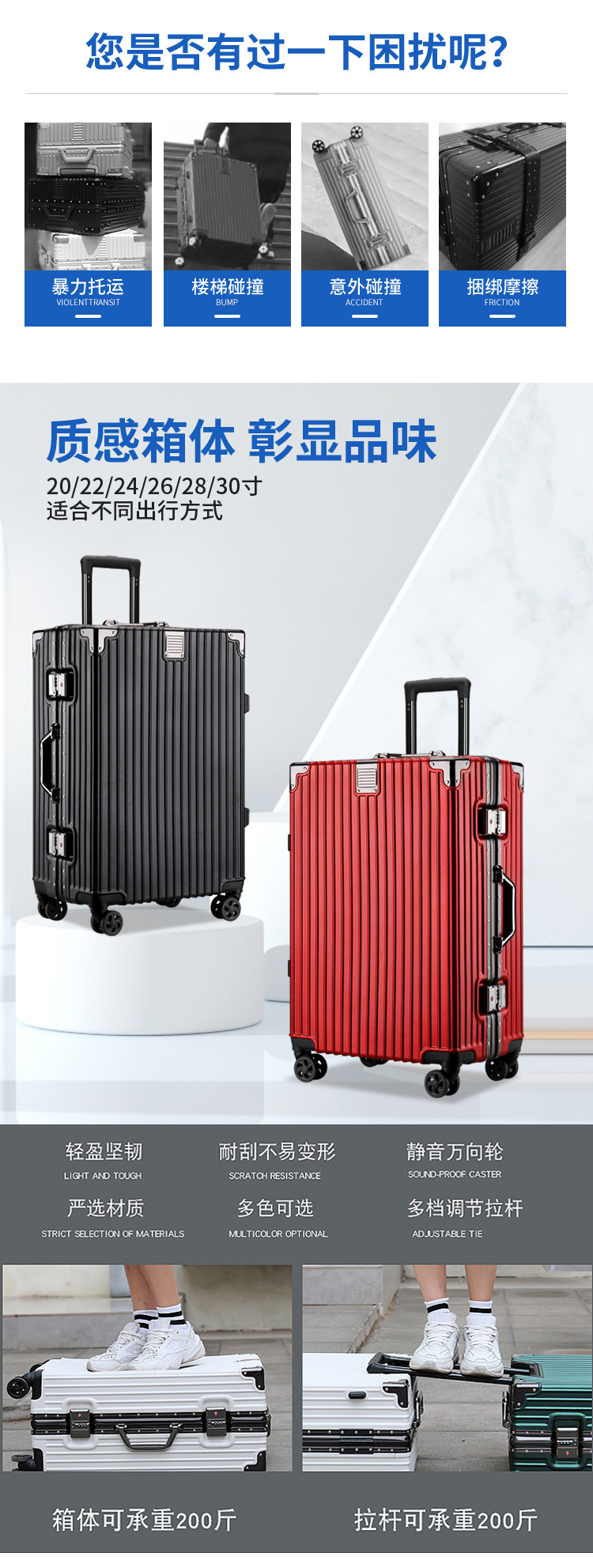 알루미늄 프레임 가방 20inch 대용량 24inch 남성과 여성 학생 트롤리 케이스 자동 범용 휠 탑승 가방