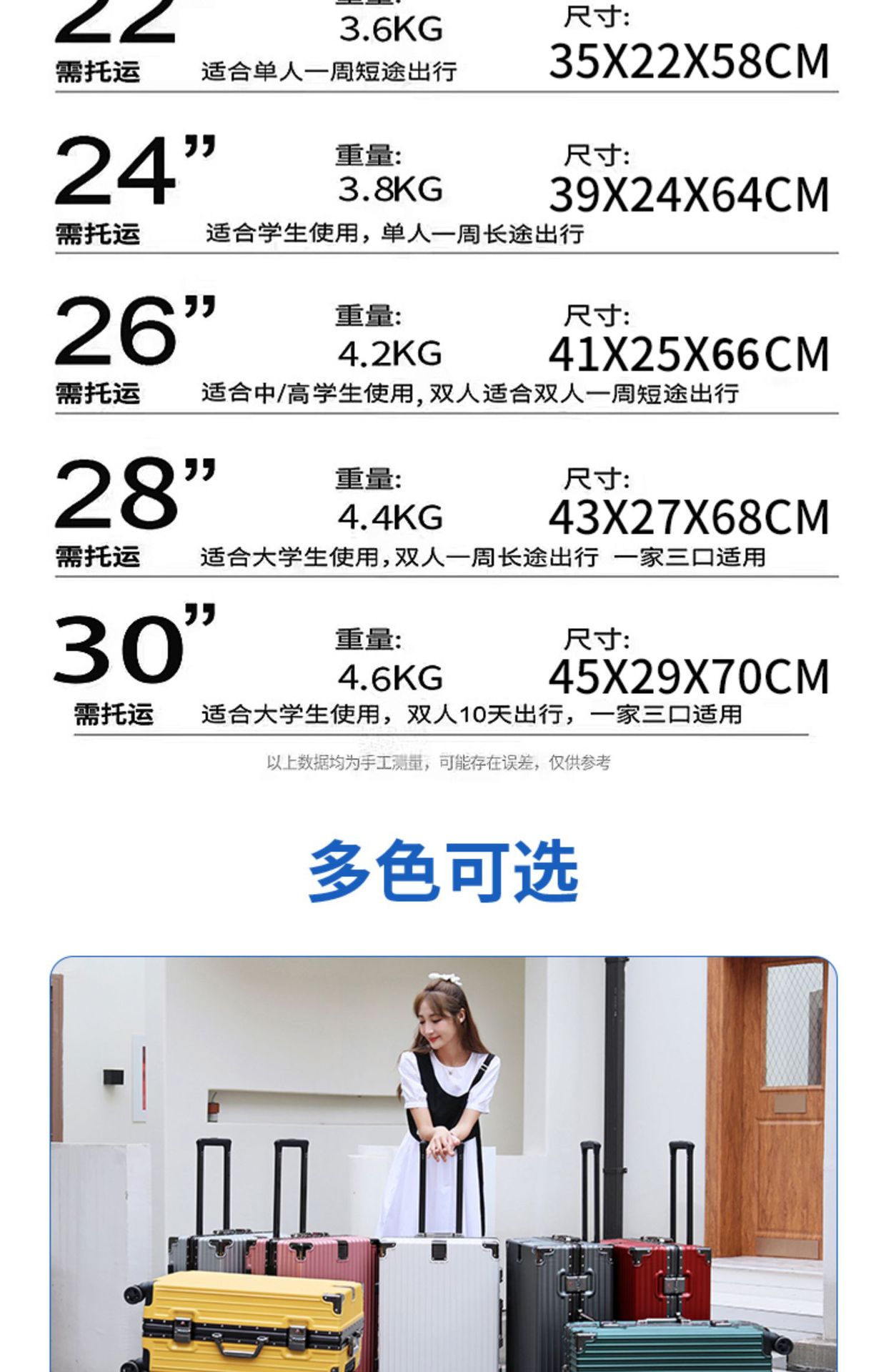알루미늄 프레임 가방 20inch 대용량 24inch 남성과 여성 학생 트롤리 케이스 자동 범용 휠 탑승 가방스토어 가기