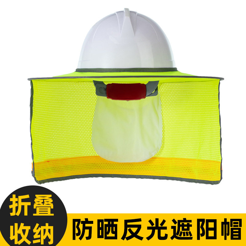 안전 헬멧 태양 바이저 여름 태양 보호 반사 스트립 태양 방패 태양 바이저 접이식 목도리 야외 건설 현장스토어 가기