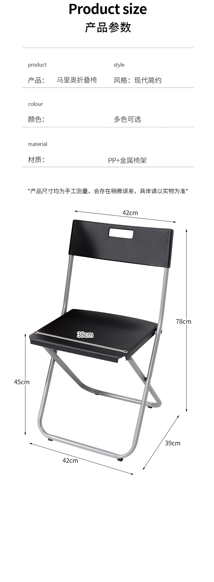 • 업그레이드된 두꺼운 접이식 의자 - Mario 올 블랙