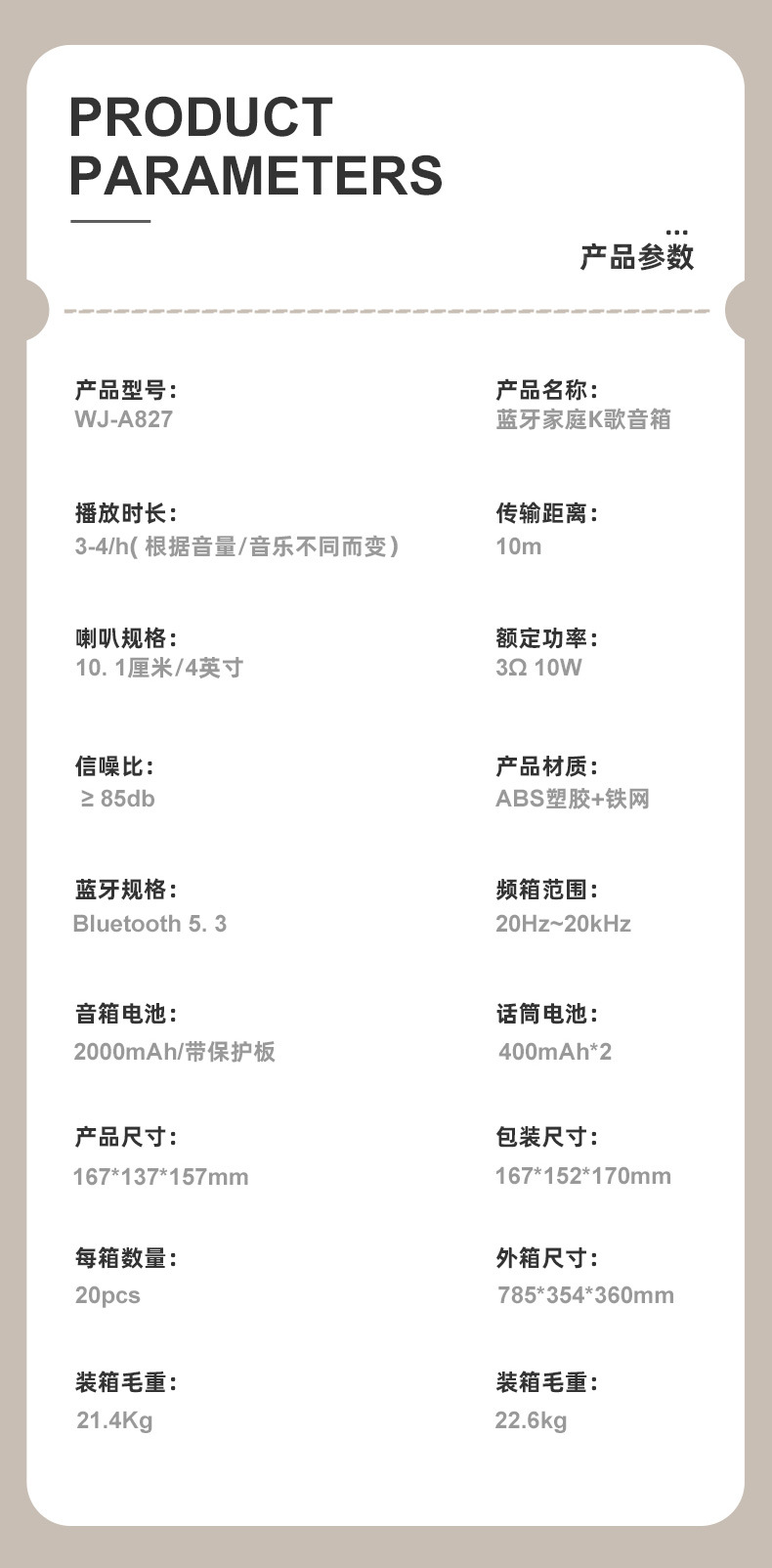 12) 装箱单:说明书*1,充电线*1,麦克风*2