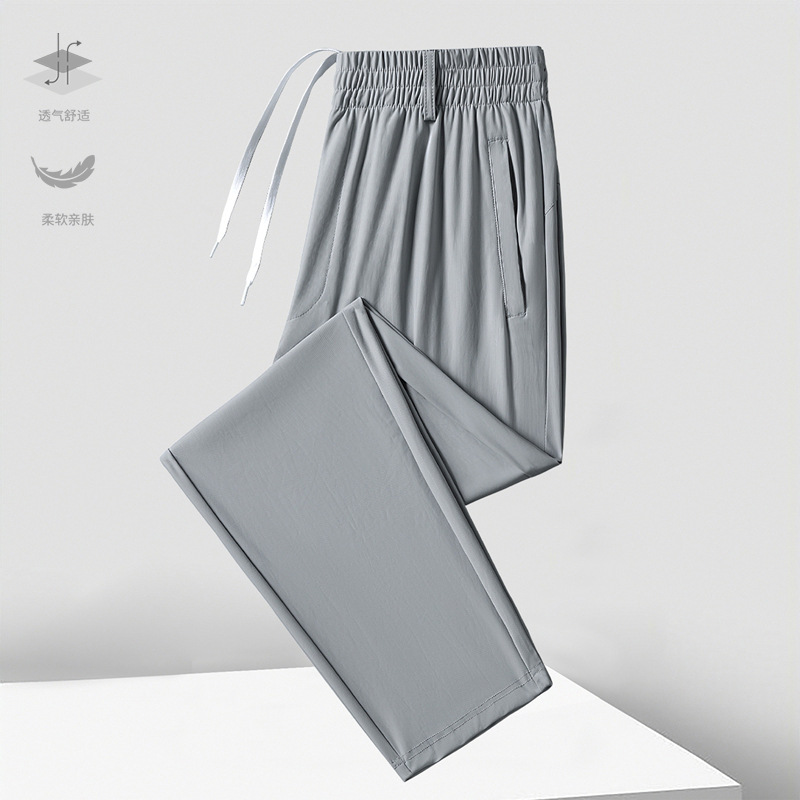 남성과 여성의 얇은 스포츠 캐주얼 바지 남성 야외 하이킹 통기성 느슨한 입 아이스 실크 바지