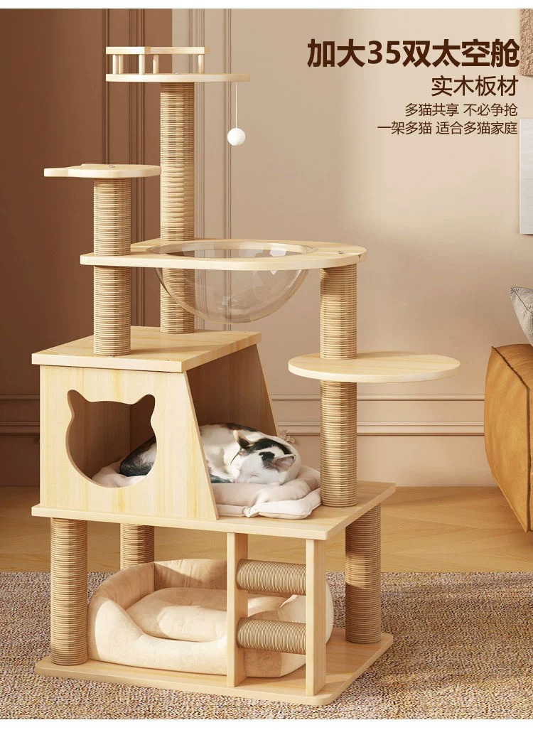원목 고양이 클라이밍 프레임, 고양이 집, 고양이 트리, 스페이스 캡슐, 고양이 스크래쳐, 고양이 스크래칭 보드, 장난감, 긁기 및 등반용, 애완 고양이 인기 상품