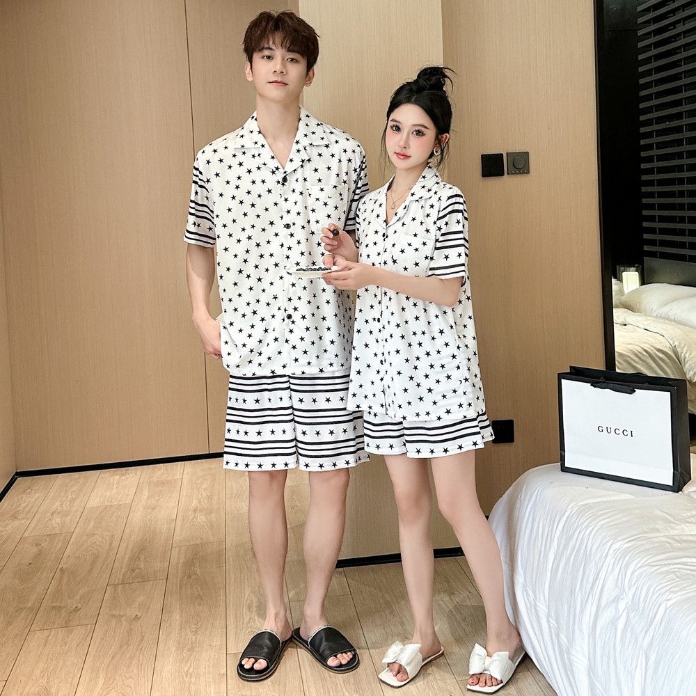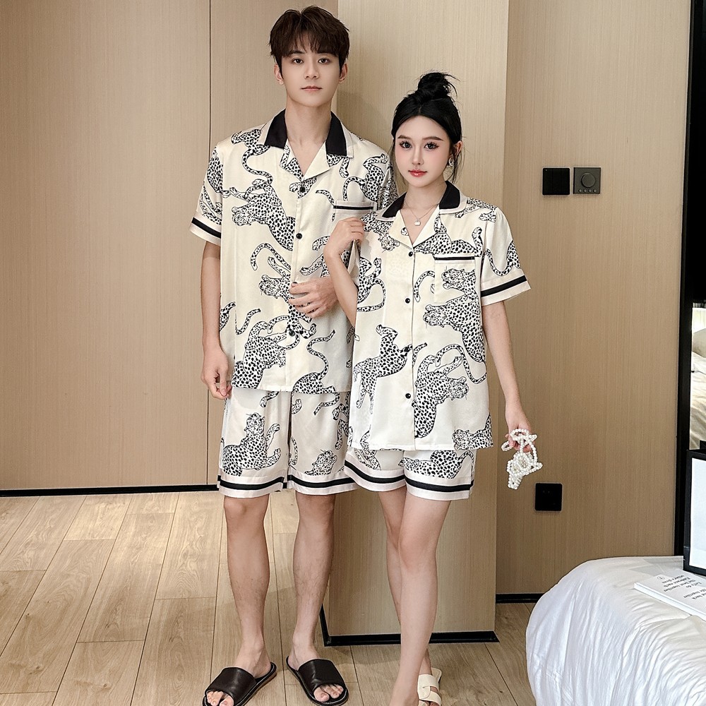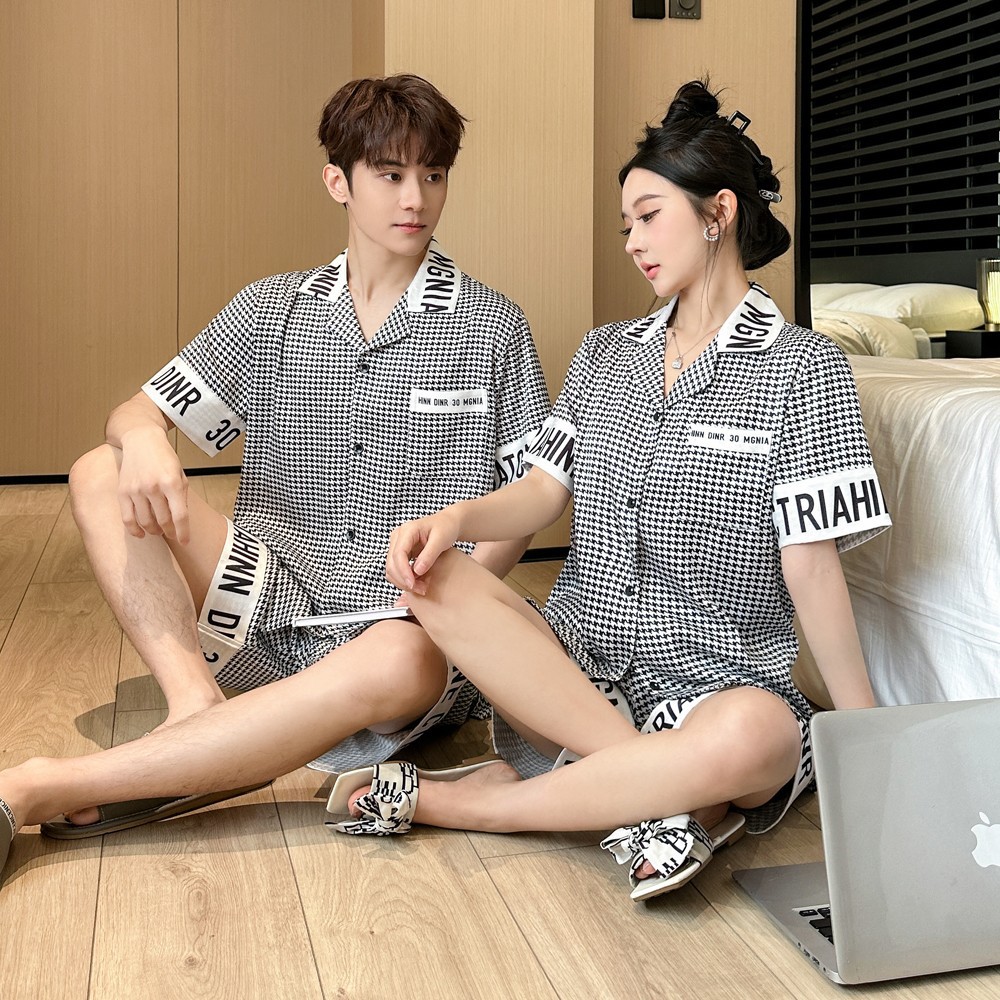 여름 얇은 커플 잠옷 여성 반팔 반바지 대형 사이즈 인터넷 인기 프린트 외출 가능 홈웨어 세트 항균