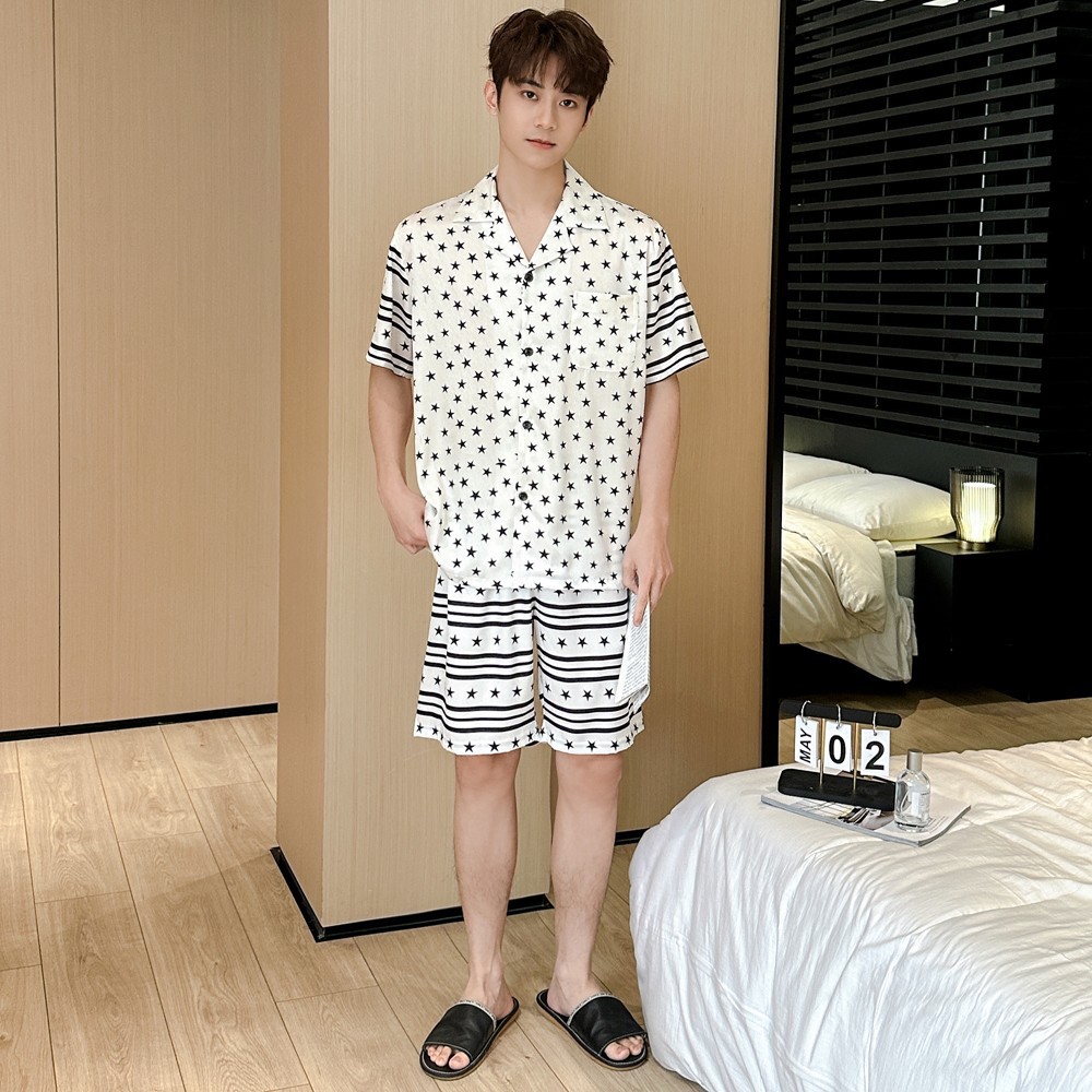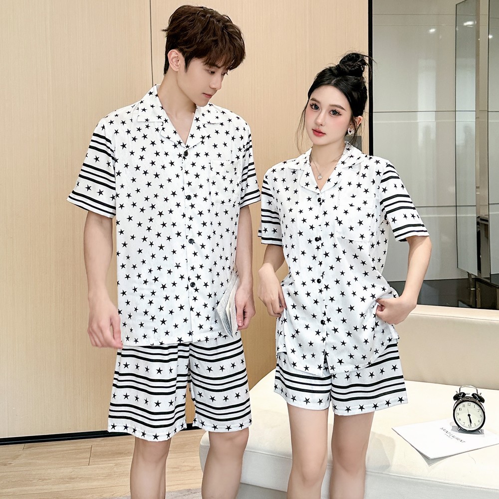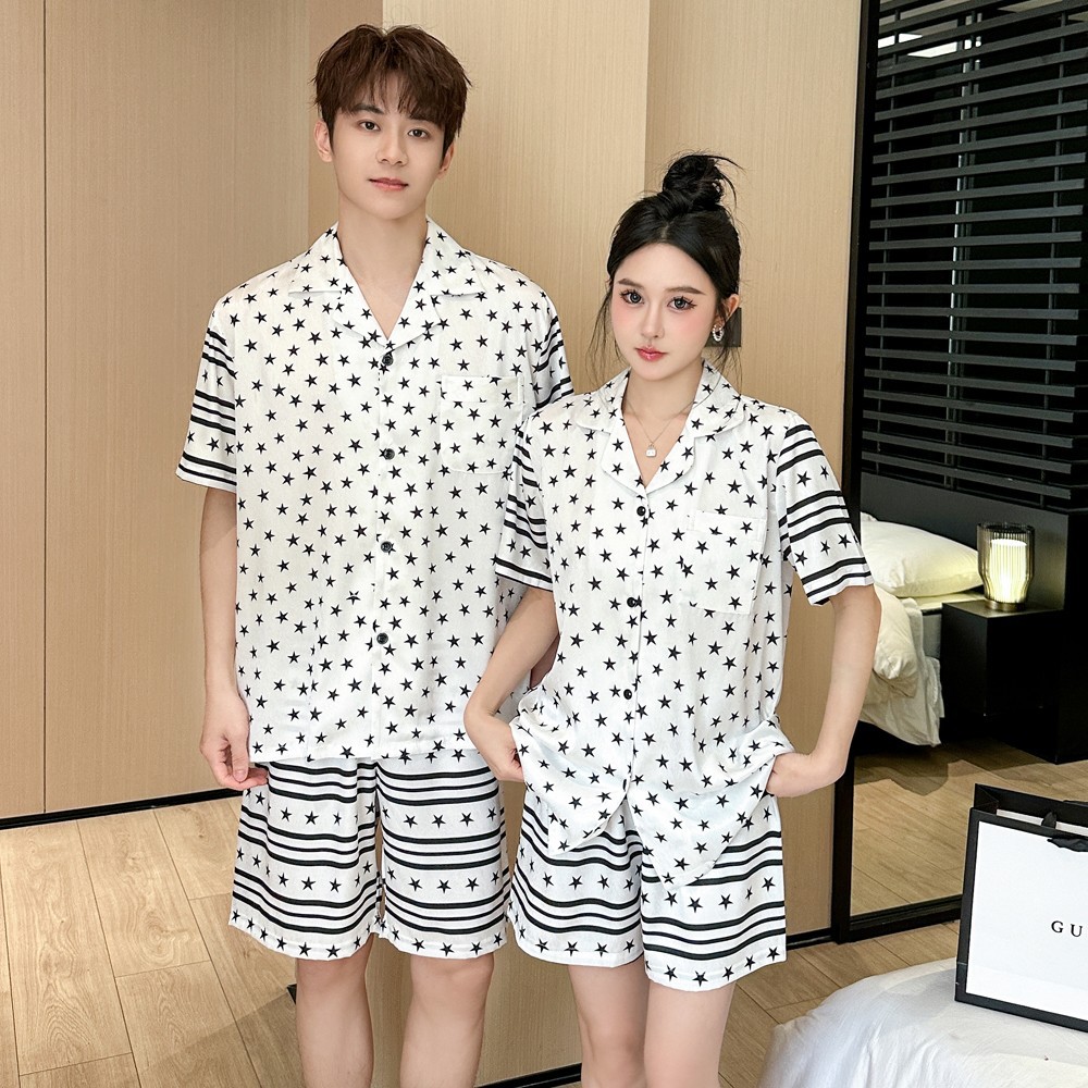 여름 얇은 커플 잠옷 여성 반팔 반바지 대형 사이즈 인터넷 인기 프린트 외출 가능 홈웨어 세트 항균스토어 가기