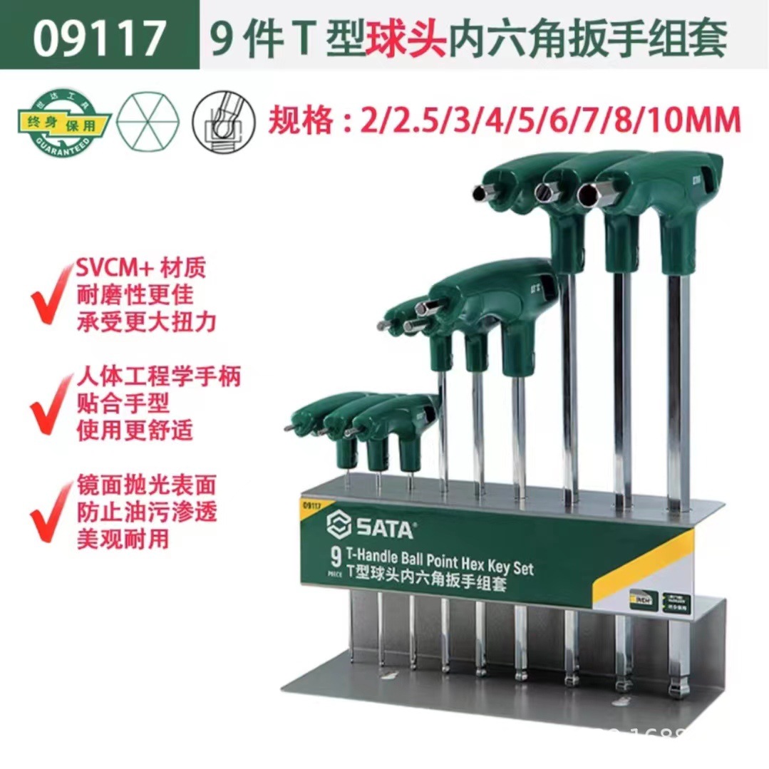 • 09117 [볼 헤드] 9 개 조각의 T 자형 육각형 소켓 세트