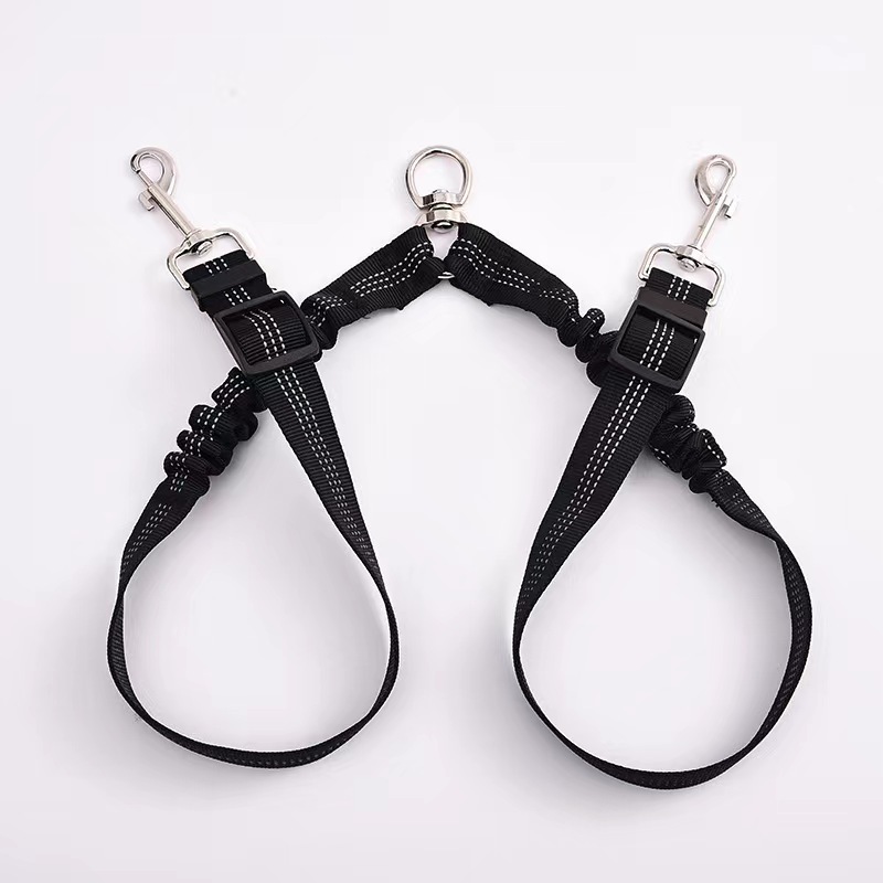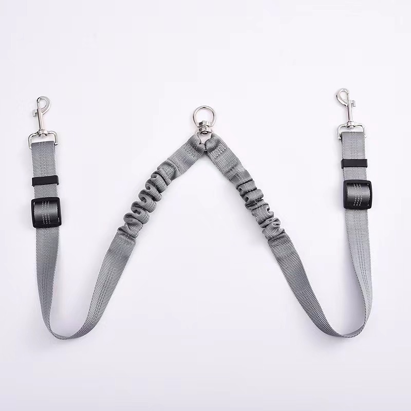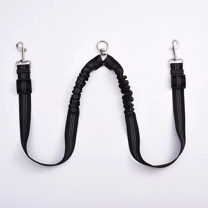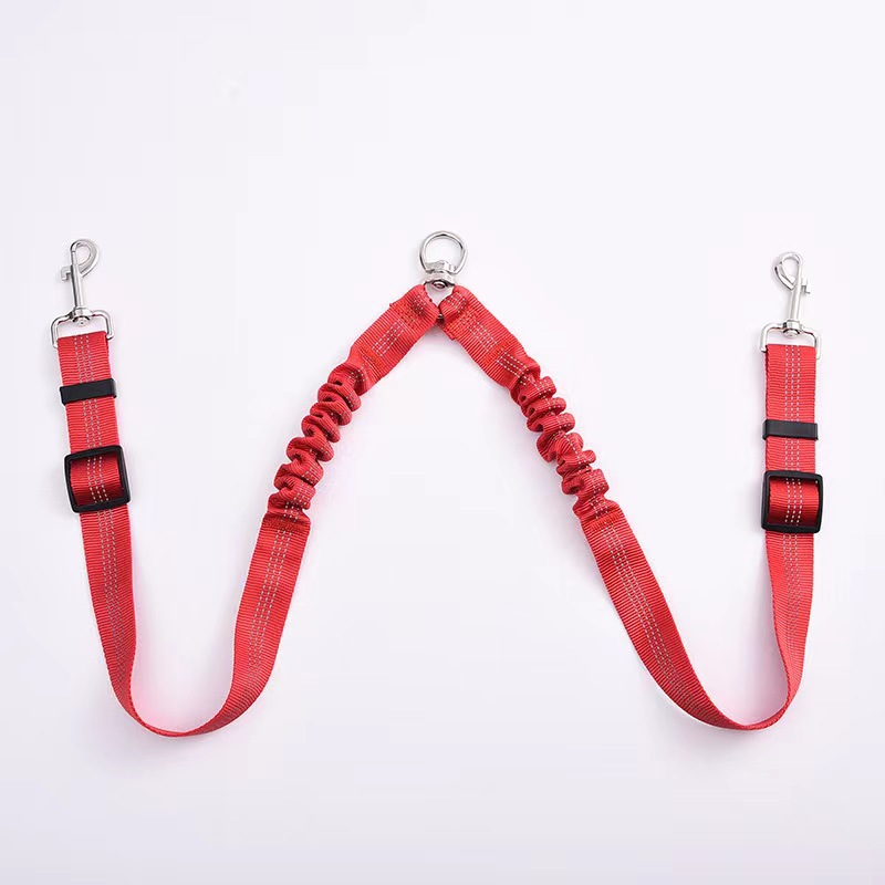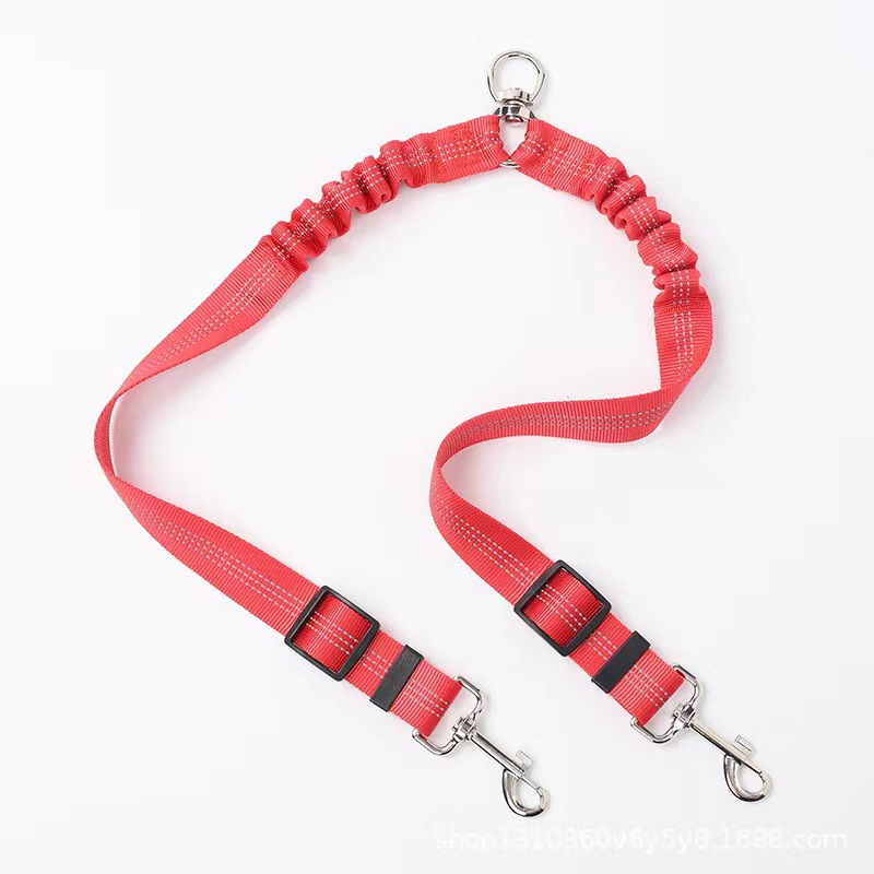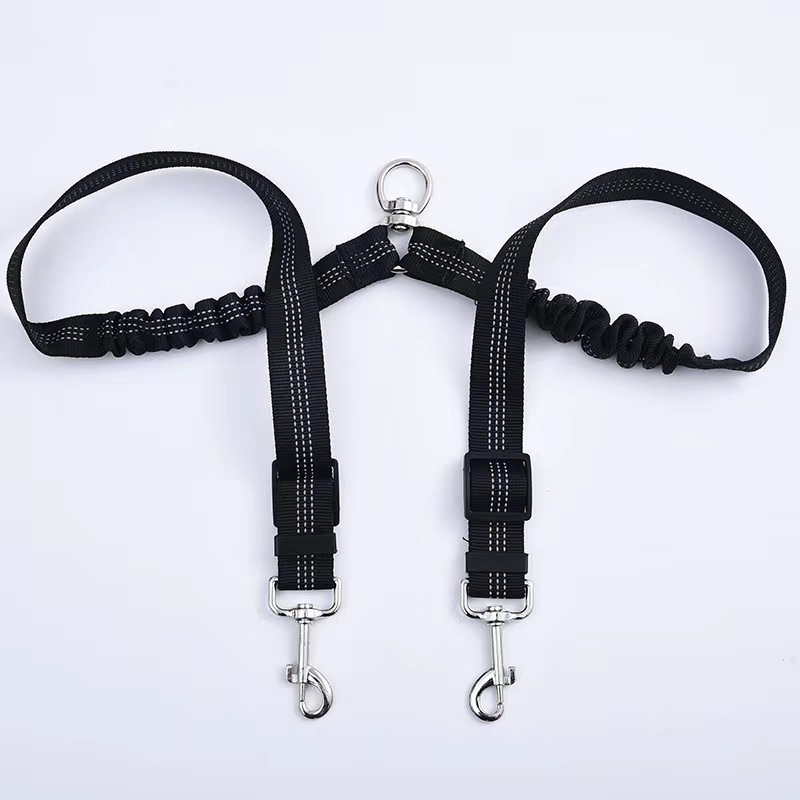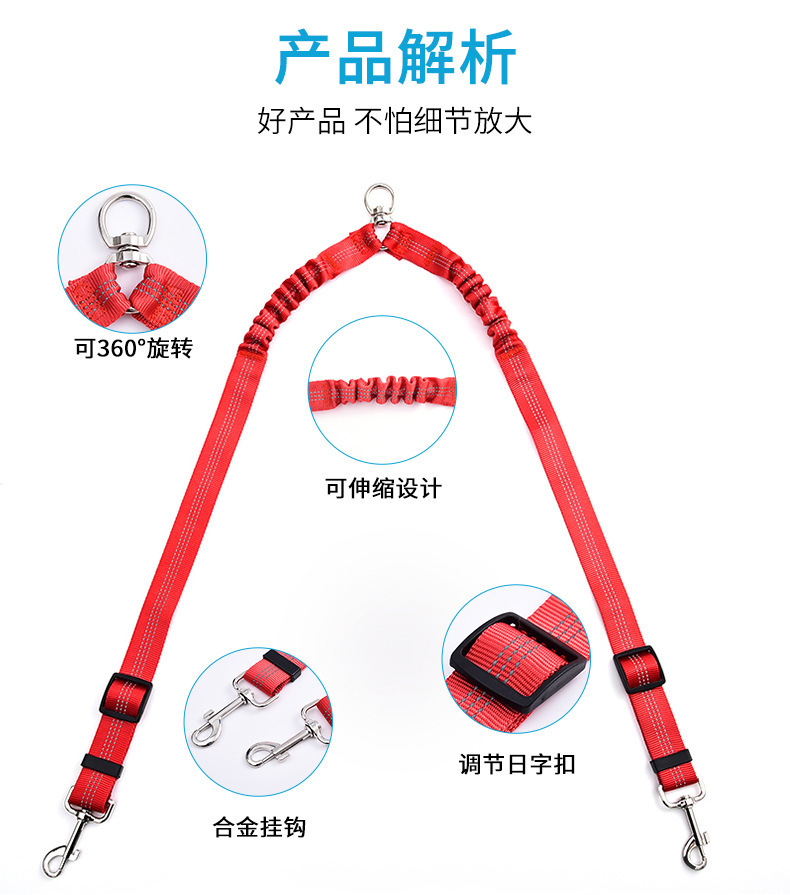 아마존 애완 동물 더블 헤드 탄성 가죽 끈 1 드래그 2 버퍼 개 가죽 끈 개 벨트 360 도 회전 텔레스코픽 로프