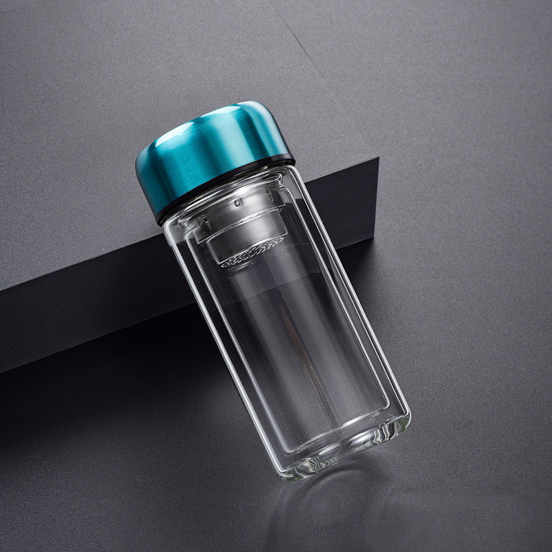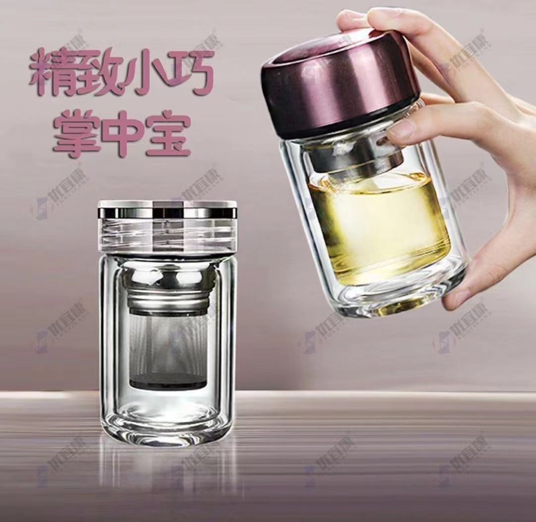 유리 컵 도매 더블 레이어 유리 인쇄 로고 높은 붕규산염 절연 유리 컵 작은 선물 인쇄
