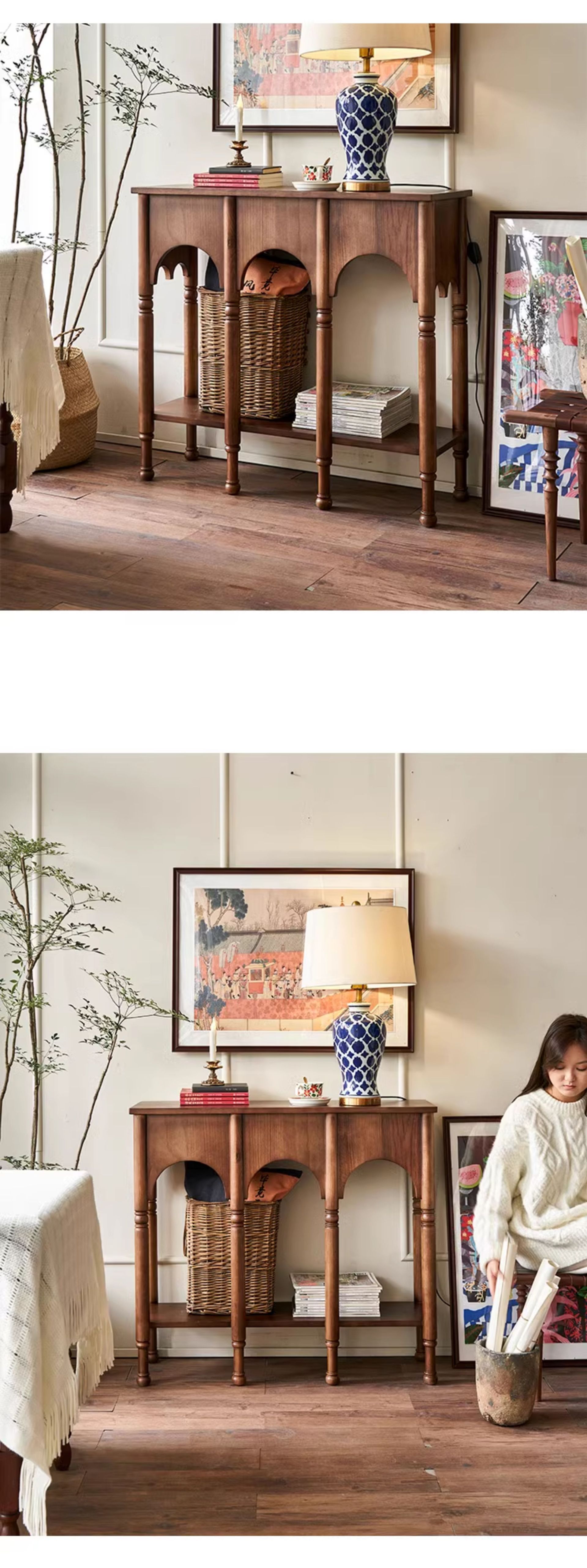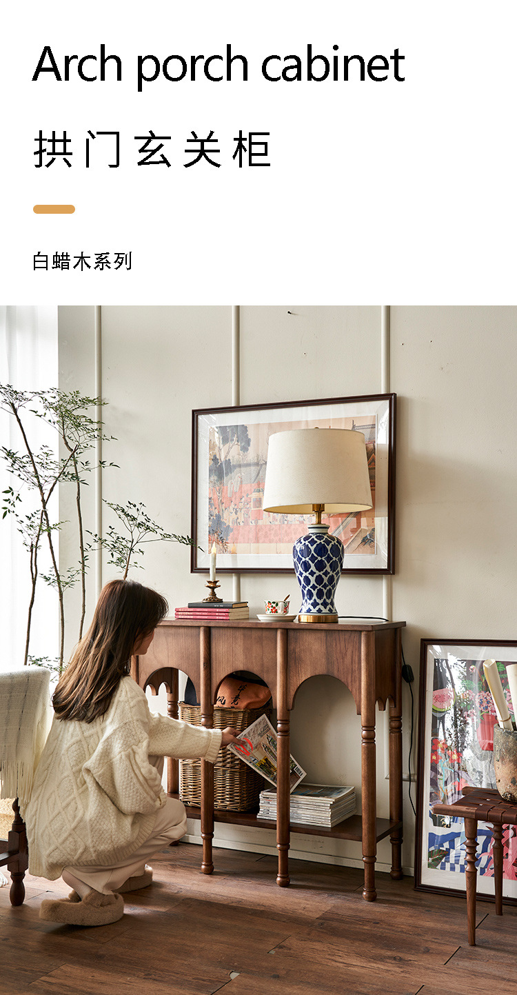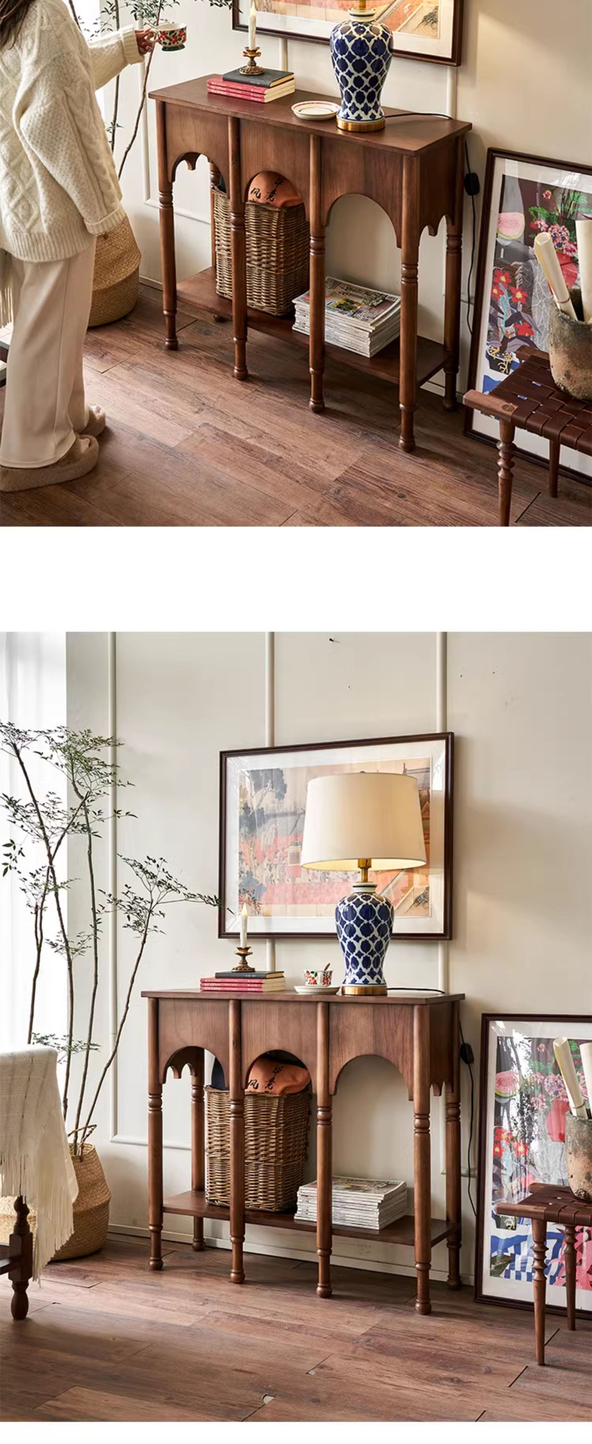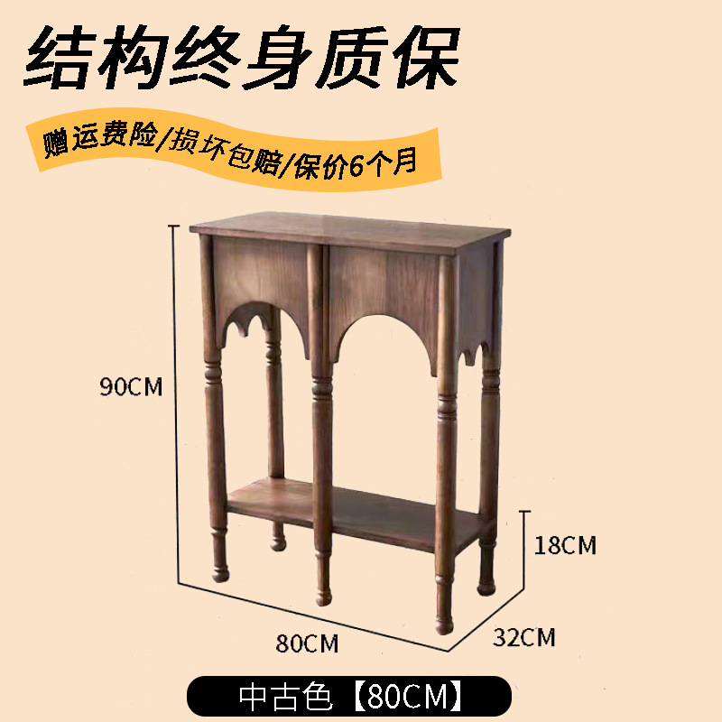 프렌치 레트로 스타일 현관 테이블 좁은 현관 테이블 거실 원목 사이드 캐비닛 수납장 사이드 테이블 포산 가구 현관문