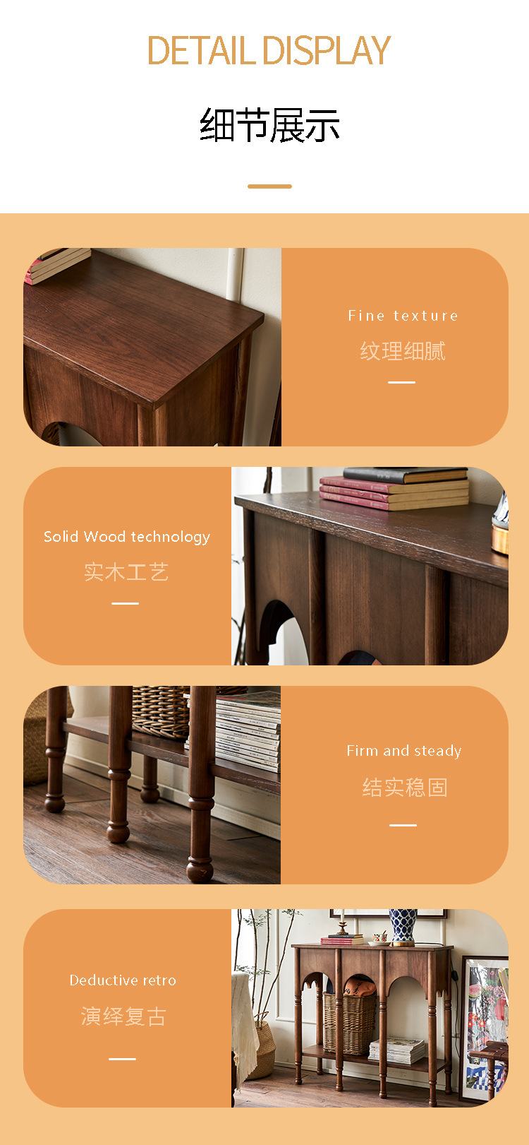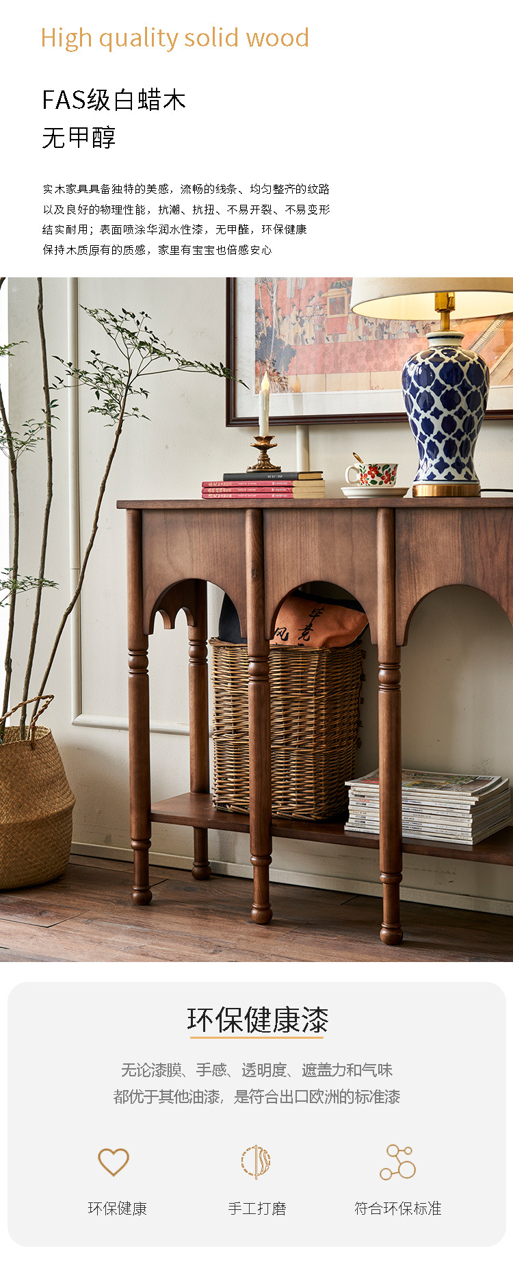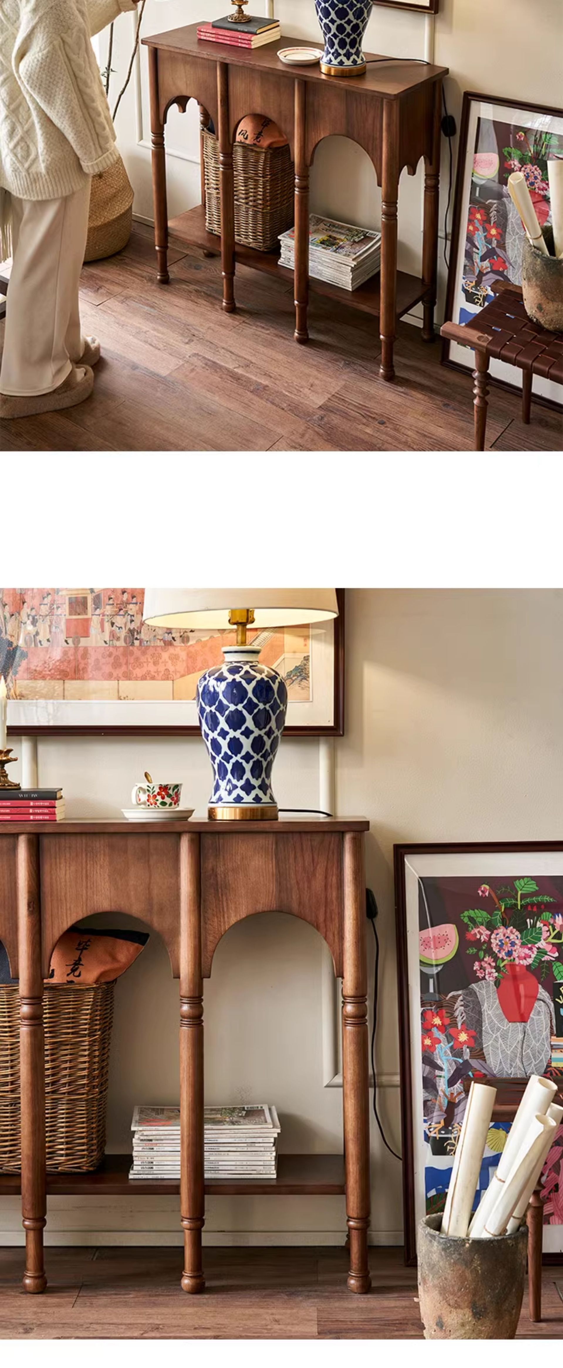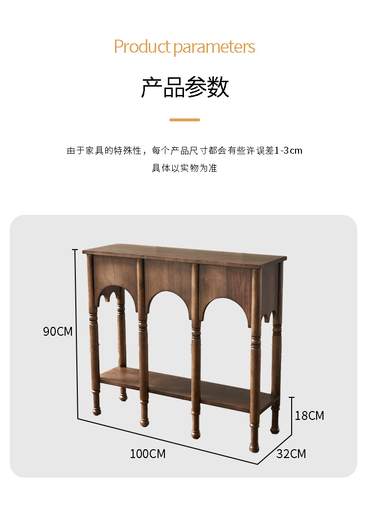 프렌치 레트로 스타일 현관 테이블 좁은 현관 테이블 거실 원목 사이드 캐비닛 수납장 사이드 테이블 포산 가구 현관문