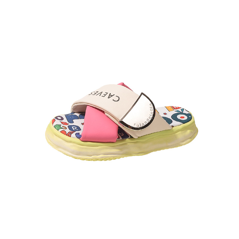 두꺼운 밑창 샌들과 슬리퍼 여성의 여름 야외 낙서 년 새로운 온라인 인기 유럽 제품 낙서 해변 샌들은 배설물을 밟는 것처럼 느껴집니다.
