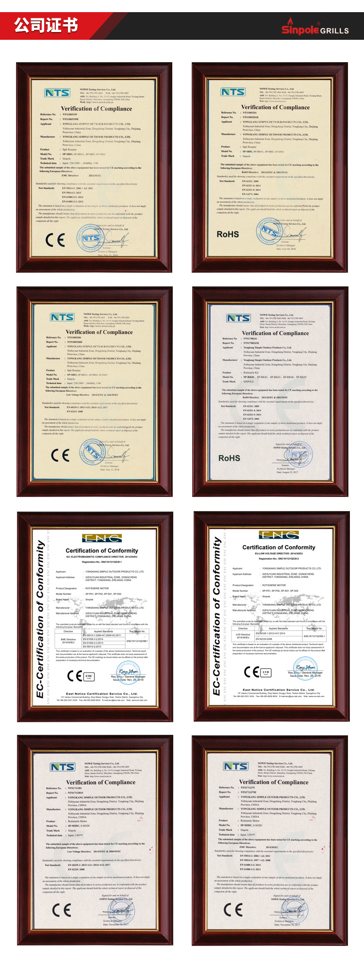 食品接触部分烤网,烤杆,烤叉全部采用SUS304制作,产品通过欧美LFGB/FDA食品论证。