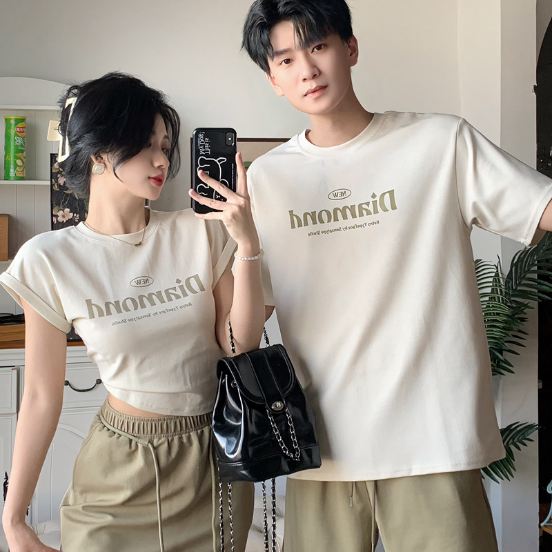 2024 년 여름 새 커플의 올 매치 반팔 편지 프린트 티셔츠 여성용 여름 투피스 세트스토어 가기